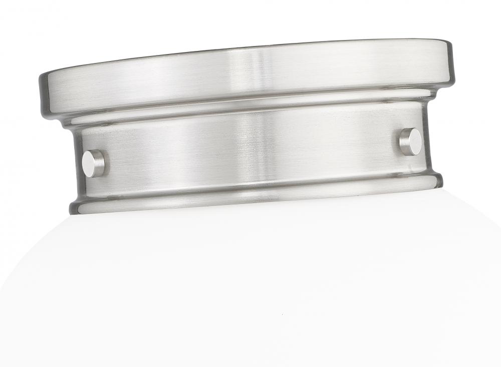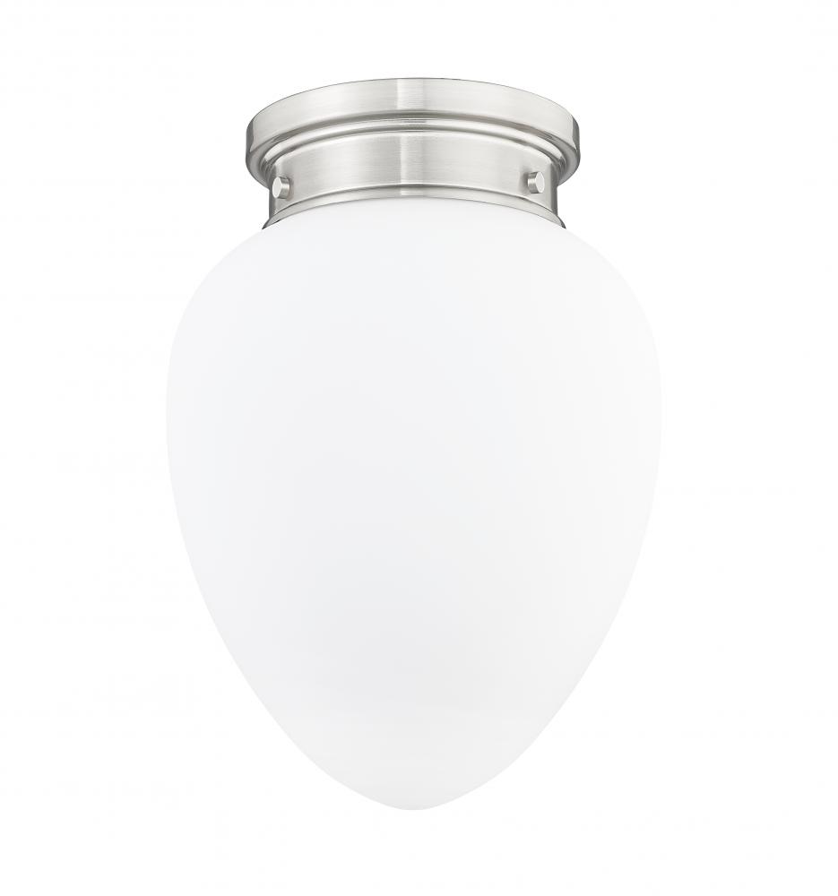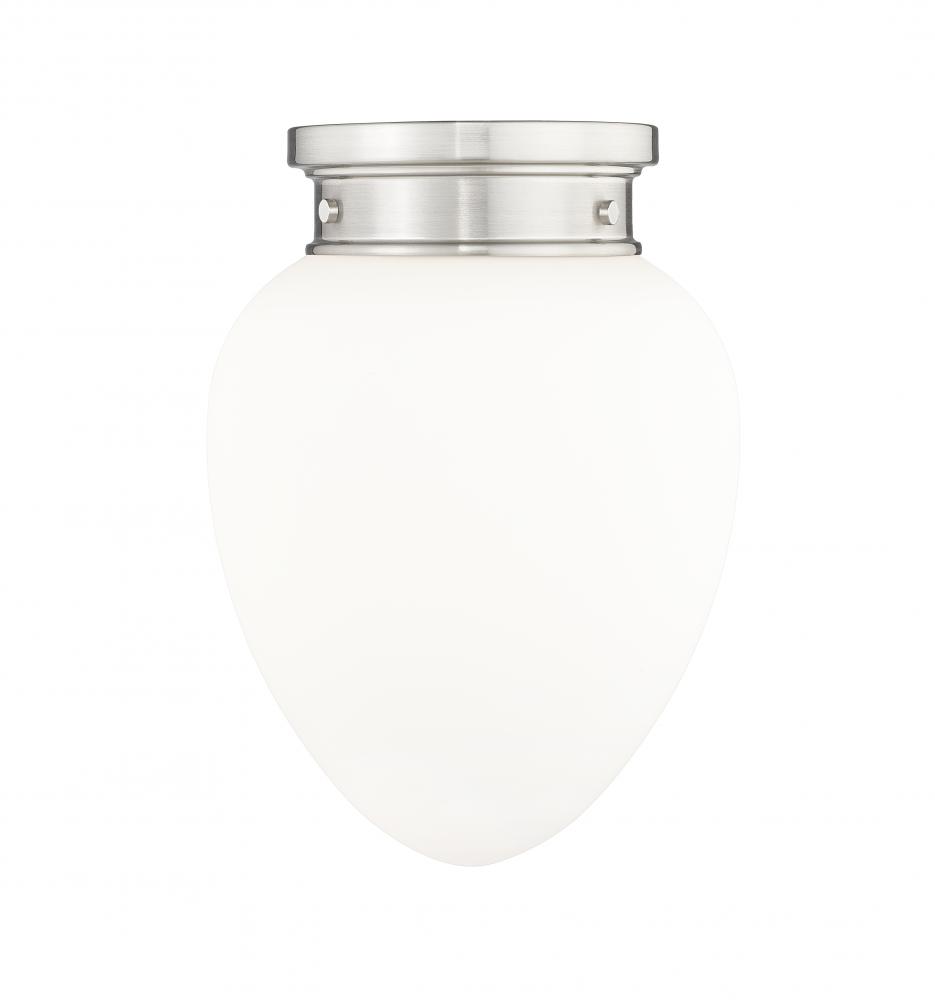Harness the vintage charm of schoolhouse glass and a chic silhouette in this modern one-light flush mount ceiling light. A delicately rounded, teardrop-style glass shade is crafted in etched opal glass, delivering timeless elegance that brims with versatility, complementing in casual and more formal living spaces. A brushed nickel finish is crisp and elegant, complementing surrounding decor with ease.