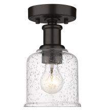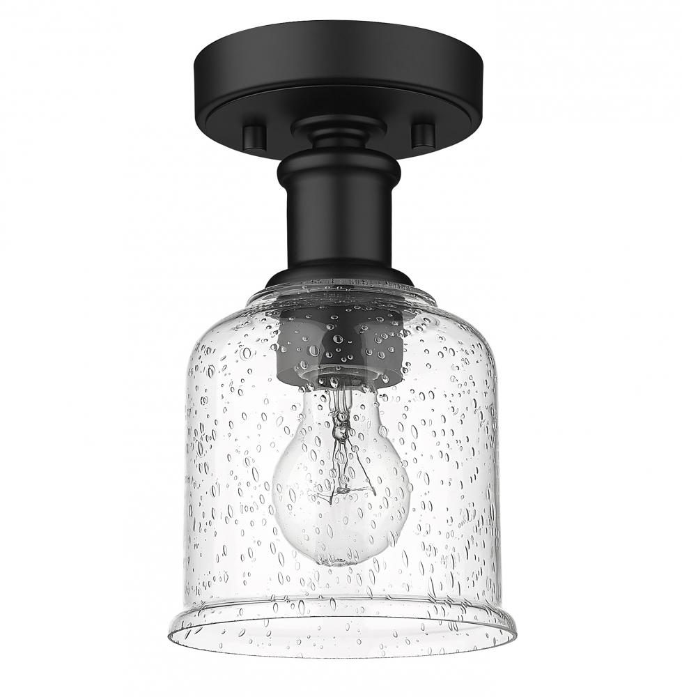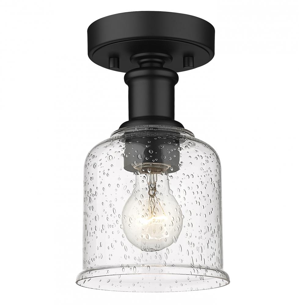 Add a touch of lighting or accent a tight space with this beautifully understated transitional flush mount, designed with bold matte black finish plate and versatile gooseneck arm that invites you to rotate and hone in on the interior as you wish. With industrial influences and elegant materials, this sophisticated single-light flush lends a sleek, refined expression to modern farmhouse homes with its versatility as well as its soothing glow, presented by a clear seedy glass globe that offers a hint of texture and artisan quality. Place this classically designed restoration style flush mount within an entryway foyer or down a hallway, elevating it into a more inviting space.