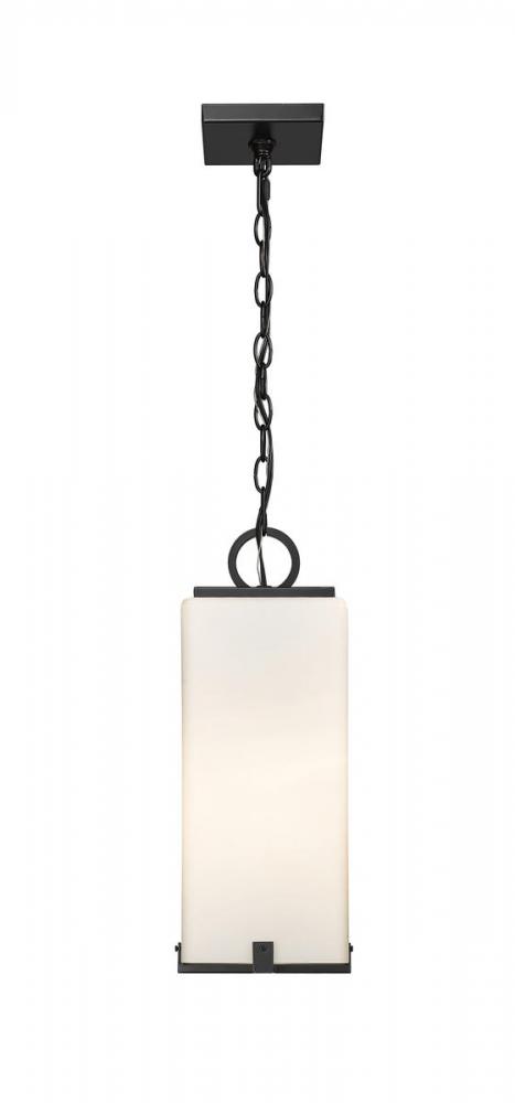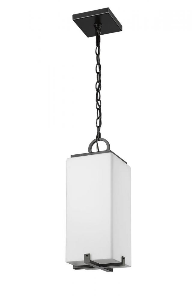 When youre looking for a contemporary lighting fixture to coastal charm to your covered patio or porch, this one-light outdoor chain mount ceiling fixture is the perfect option. The fixtures black finish and steel construction are enhanced with a white opal shade to illuminate the night.