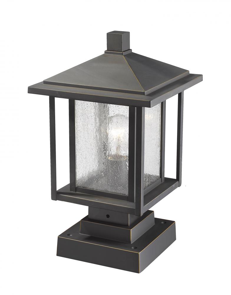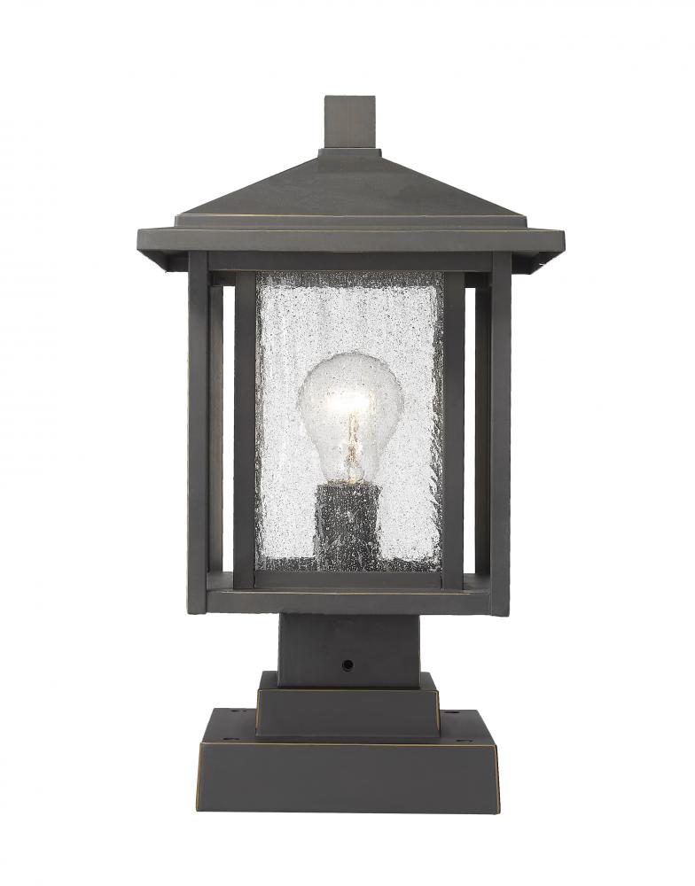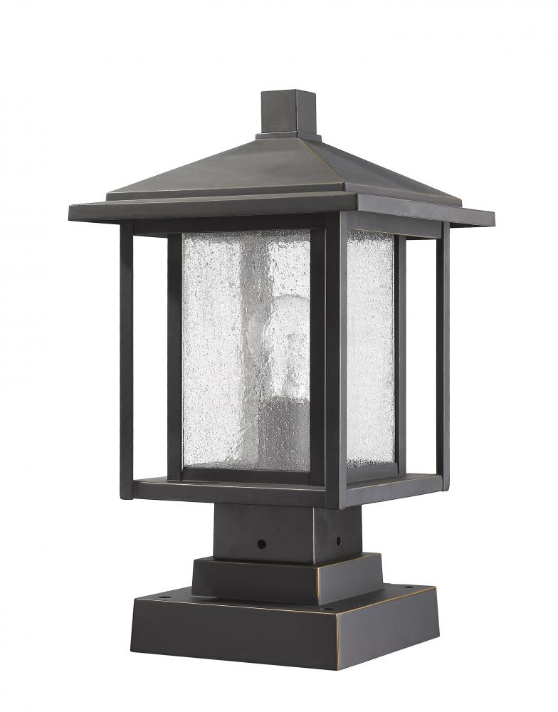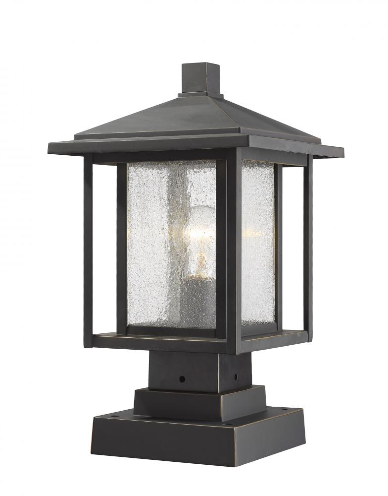 Watch an exterior landscape come to life with the addition of this elegant oil rubbed bronze finish pier mounted fixture. Featuring a dynamic aluminium dual frame, its seedy glass shade adds a perfect finishing touch and a ton of contemporary personality.