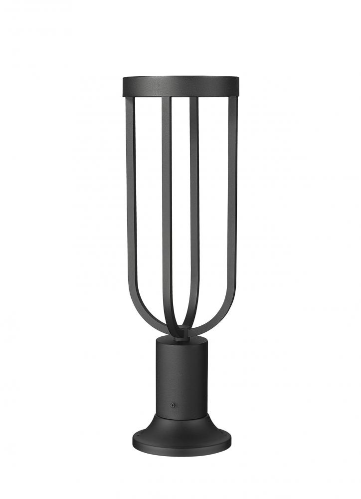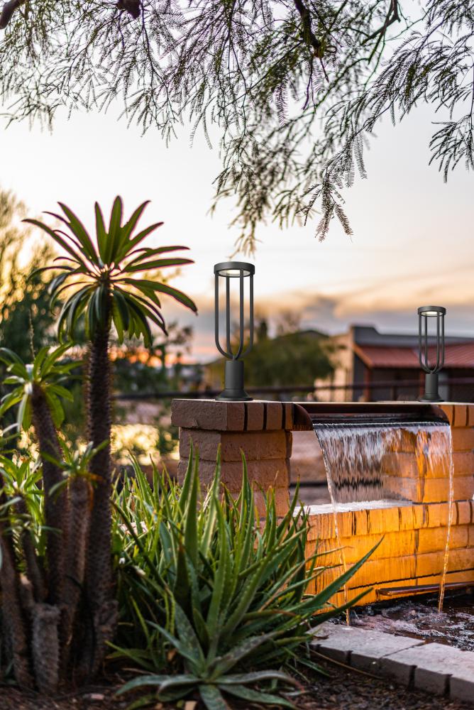 Versatility and streamlined style blend to create a striking look for a modern one-light outdoor post mount fixture that showcases selectable color temperature. Perfect for railings, stairs, and more, the light features an energy efficient LED and a sand black finish for marine-grade durability, all complementing a sleek silhouette that includes an open cage lantern with a teardrop shape that adds graceful elegance.