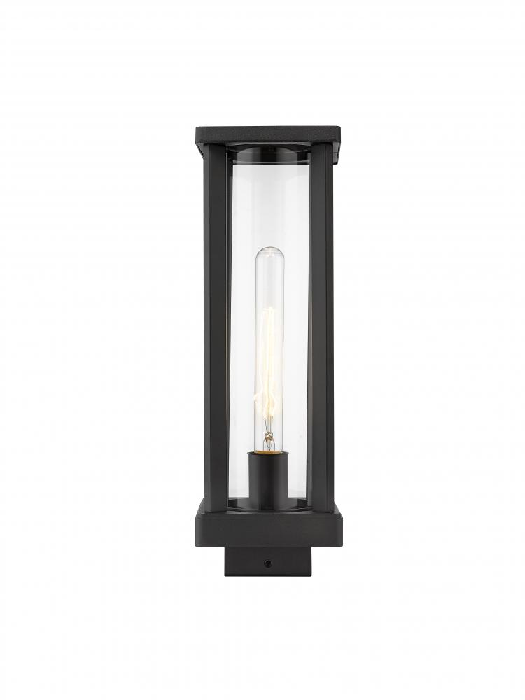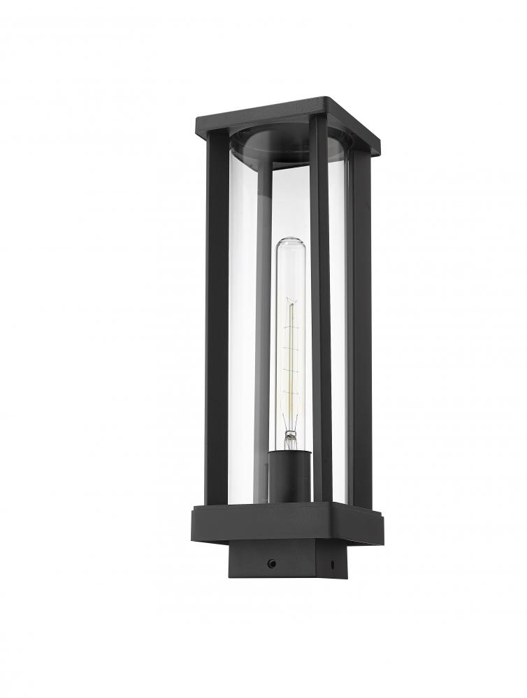 As part of the Glenwood outdoor lighting collection, this super-stylish and contemporary post mounted fixture is ideal for illuminating landscapes and spacious patio entertainment areas. With a tall and rectangular, contemporary aluminum frame that encapsulates a cylindrical clear glass globe, this post mount lighting piece allows for a brightened space. This lantern also features a handsome, dark black finish that complements a homes existing architectural elements and color palettes.