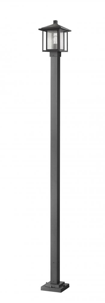 Bring a stylish look to an outdoor space with this black finish outdoor post mounted fixture. Classic aluminium construction joins seedy glass to produce a charming updated village look that adds personality to any landscape.