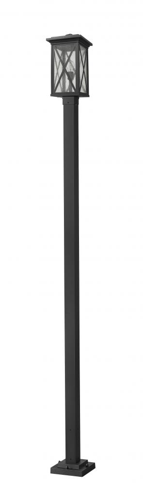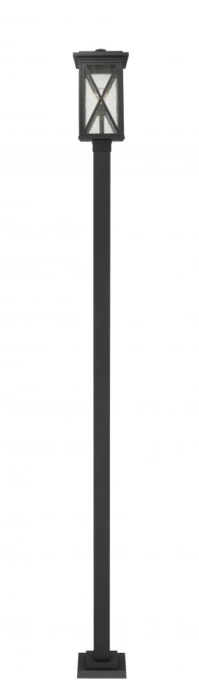 This one-light outdoor post mounted fixture has a straight-edged black aluminum post supporting a black cage with a clear seedy glass finish that softly diffuses light to provide a welcoming glow alongside your impression. Compelling X-accents bring dimension and character. Perfect for offering an optimal lighting source targeted for your outdoor needs.