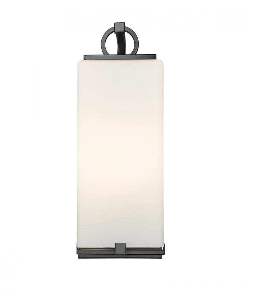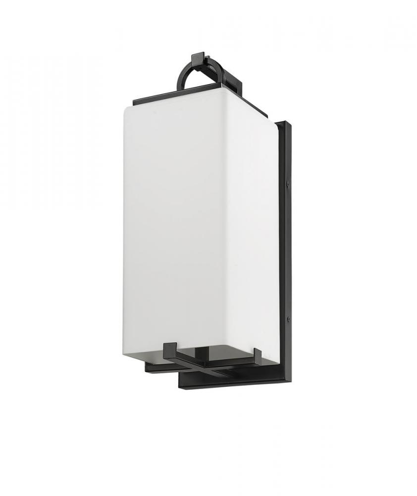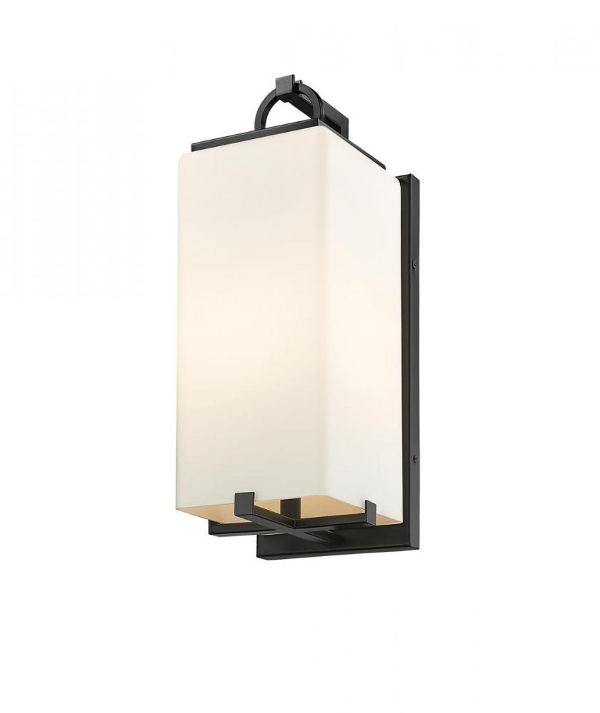 Take your outdoor area to the next level with a coastal one-light wall sconce. The black finish and steel construction of this piece provide your patio or porch with an alluring glow. The white opal shade makes for an ideal focal point for entertaining in the evening.