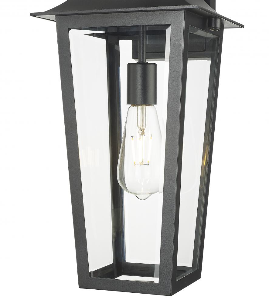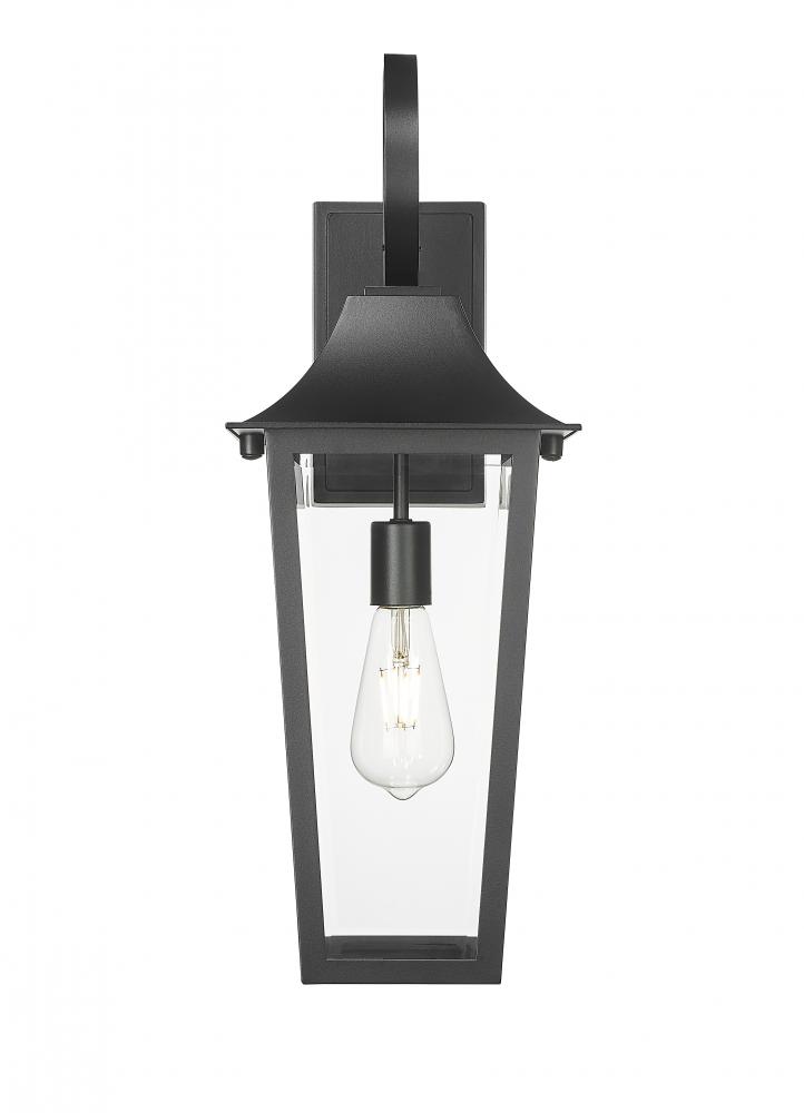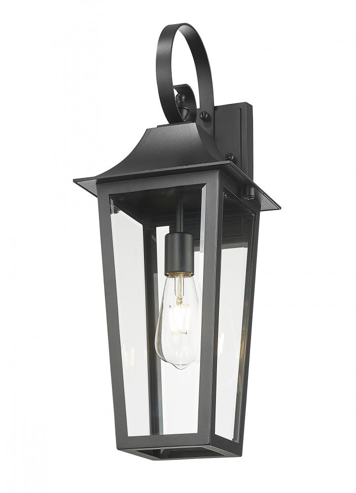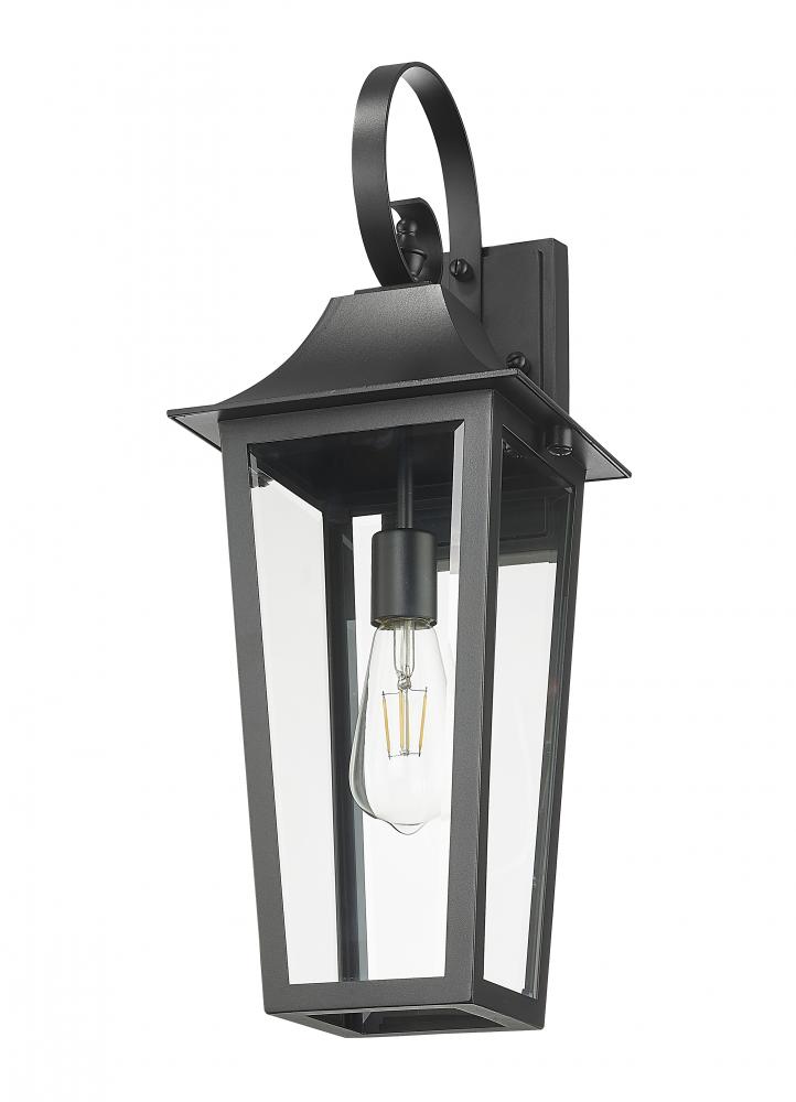 A sleek scroll arm and elongated silhouette become the stylish hallmarks of a traditional one-light outdoor wall light. In durable Coastal black over stainless steel construction, it boasts clear beveled glass panels for bright illumination on a large covered porch or patio. Offer a refined, cohesive look to your exterior with this charming fixture.