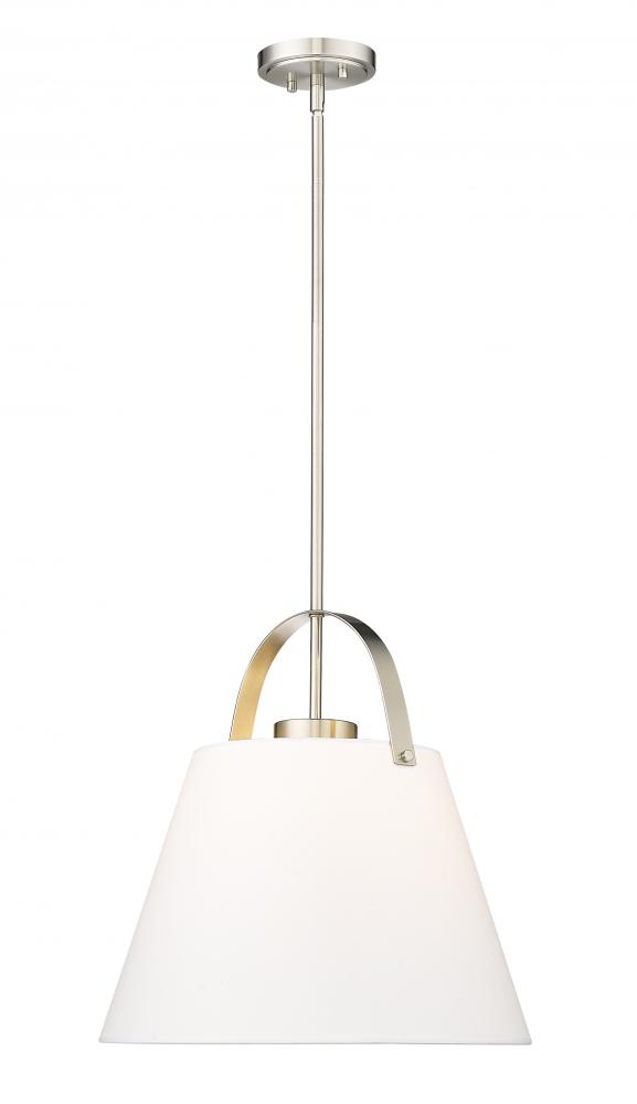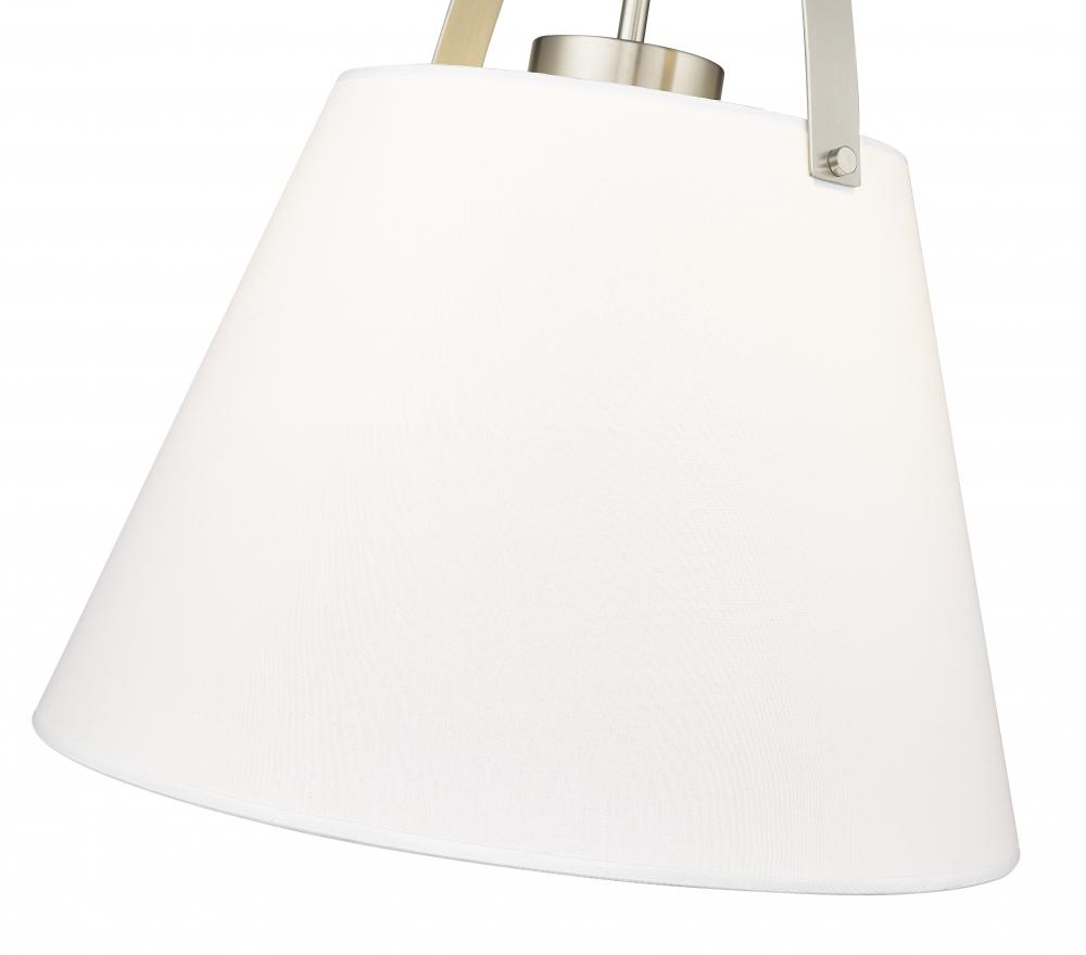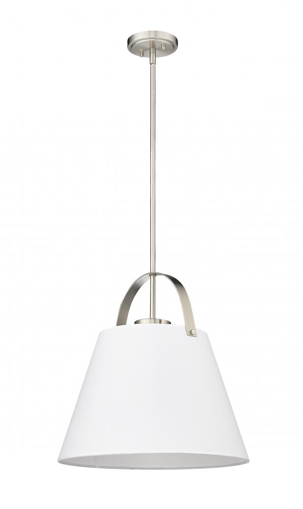 Add a dose of coastal charm, farmhouse personality, or casual elegance suited to a contemporary space with a light fixture created for impact. With a soft ivory finish conical fabric shade and a bold brushed nickel metal framing, this one-light pendant from the Z-Studio collection delivers a stylish and ornate quality. Choose this pendant to embellish the simple-living motif of a living room or foyer.