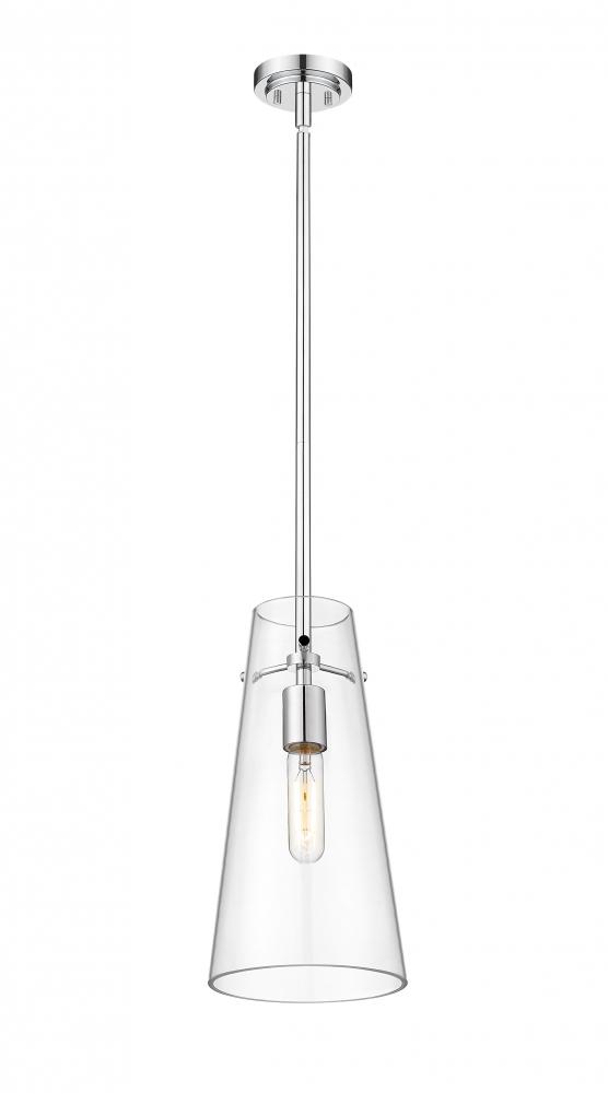 Minimalist design credentials are on full display in a modern one-light pendant. Pairing a cone of clear glass with a simple housing and suspension, the pendant is a gorgeous choice with understated elegance. Chrome finish is a sleek touch, offering a refined look and feel in your kitchen or living area.