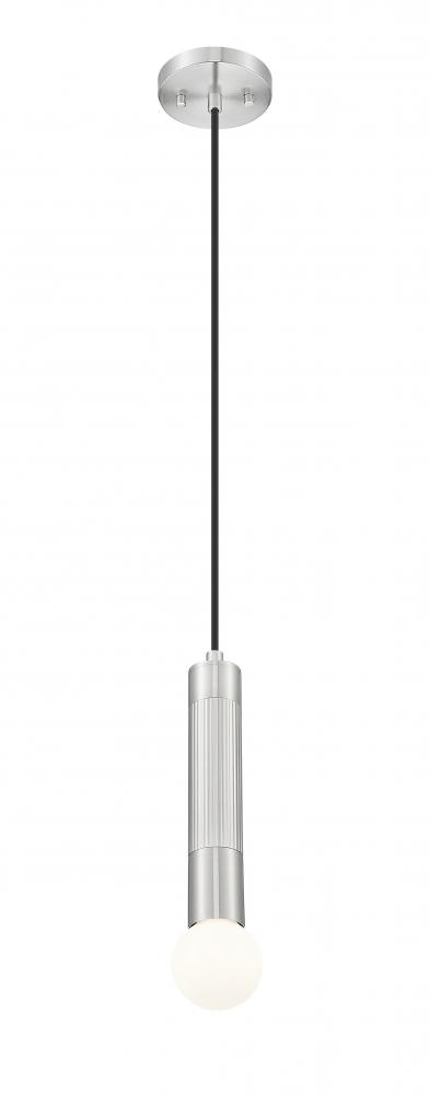 Chic brushed nickel creates gleaming allure for a modern pendant light. Its a perfect solution for small spaces, and looks beautiful grouped to create a larger lighting installation over a kitchen island or elsewhere in your home. A slim cord and petite light enhance its streamlined silhouette with graceful aesthetics and lovely ambiance.