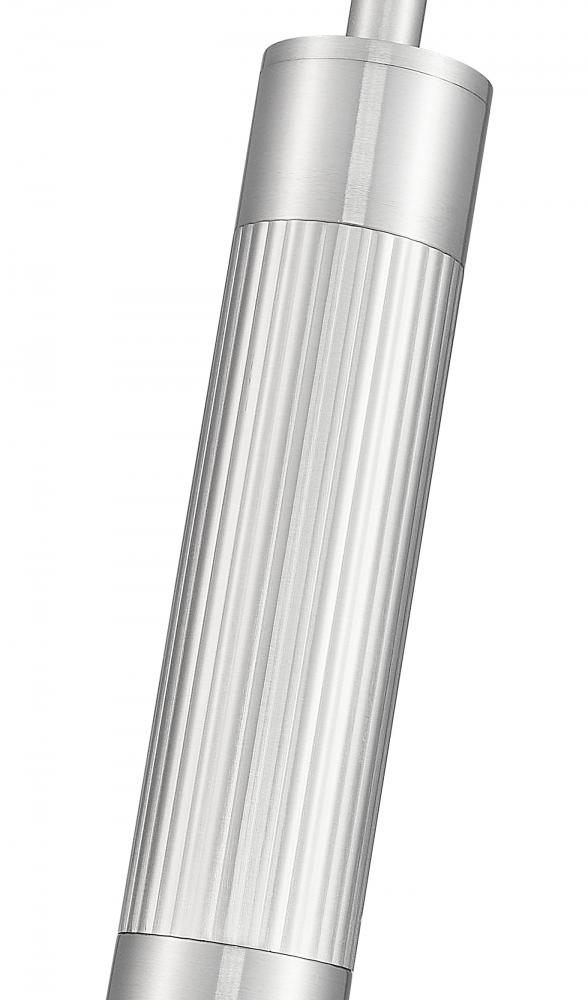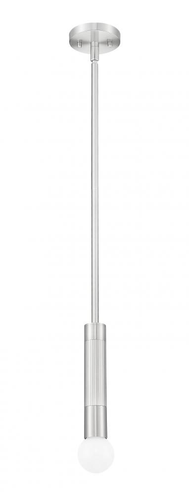 Chic brushed nickel creates gleaming allure for a modern pendant light. Its a perfect solution for small spaces, and looks beautiful grouped to create a larger lighting installation over a kitchen island or elsewhere in your home. An elongated tube and petite light enhance its streamlined silhouette with graceful aesthetics and lovely ambiance.