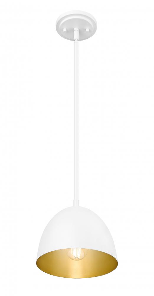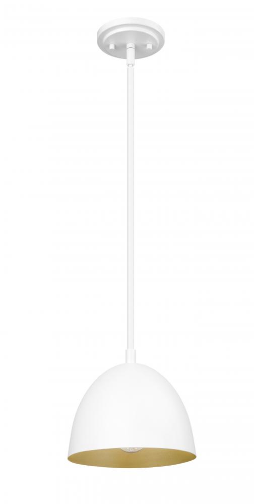 Minimalism borrows from industrial and farmhouse design motifs to create a classic look with a one light dome pendant light. Matte white finish aluminum construction offers a dome shade with lush gold lining, creating extra warmth as it lights up a kitchen island in rows, or as a solo light for hallways and living rooms. Dimming features create mood-altering light levels, ideal for adjusting to day or night needs.