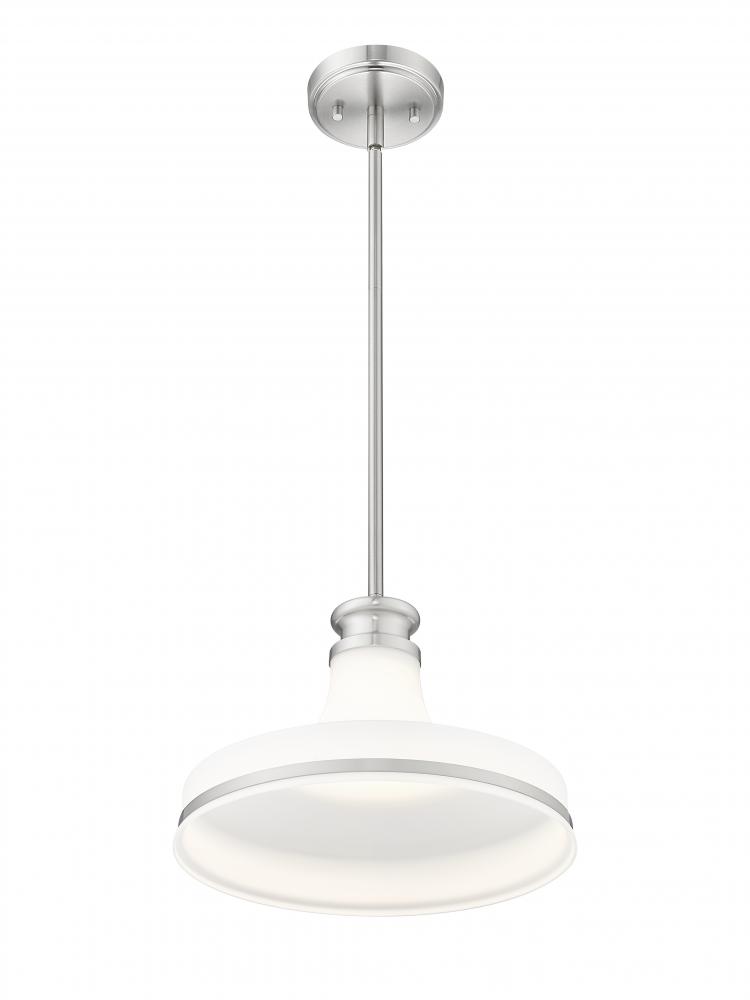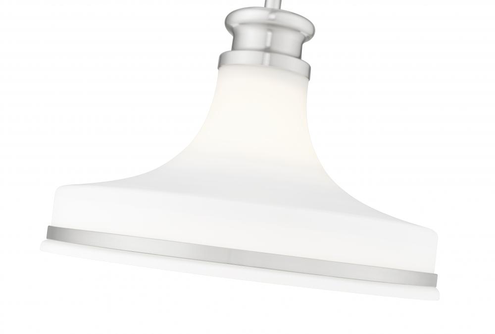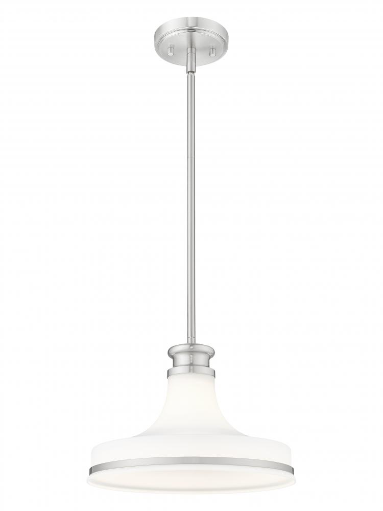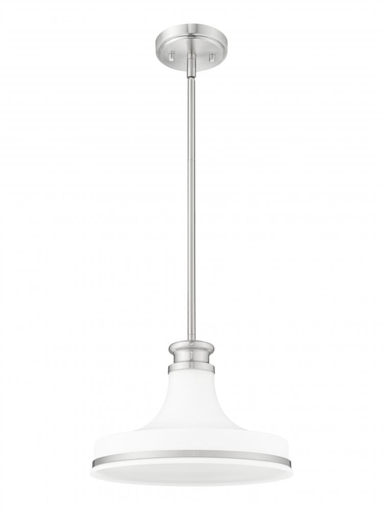 Focusing on shaping, this one-light pendant light steals the show as an example of both contemporary and retro design influence. Some vintage charm sneaks into a fixture delivering brushed nickel finish steel framing with a shapely matte opal glass shade serving as a marquee feature. Lightness and romance carve out the most tasteful looks in interior illumination for bedrooms, dining spaces, and entryways, with dimming features adding functionality.
