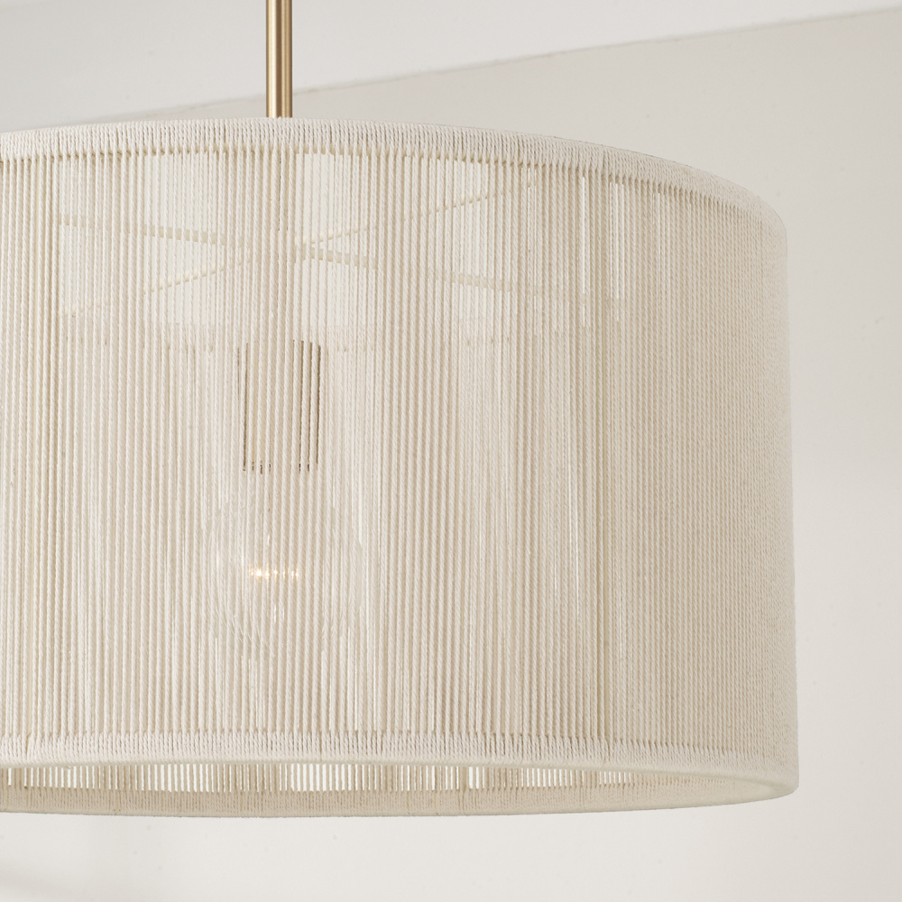 DETAILS: The hand-wrapped Bleached Natural Rope brings soft texture to the drum silhouette, complete with a warm Matte Brass finish.