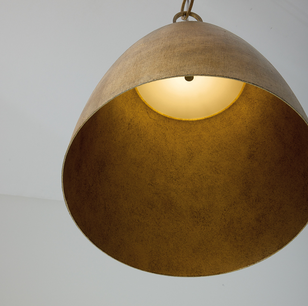 FINISH: A honey-gold brass with champagne highlights, amber low lights, and black undertones in a feathered visual texture, with handcrafted cross-hatched brushed texture on the shades.