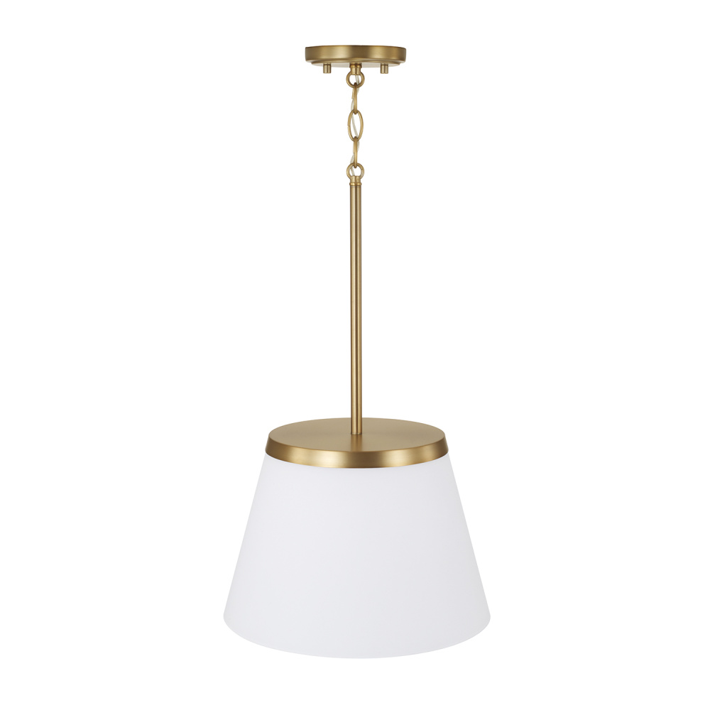 DETAILS: The tapered Soft White glass shade and clean lines create sophisticated style in an Aged Brass finish.