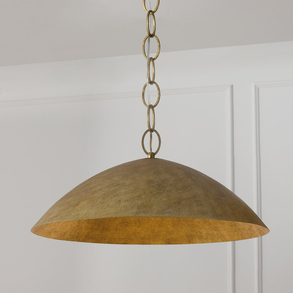 DETAILS: The handcrafted texture of the Feathered Brass finish creates a captivating sheen on the softly curved dome silhouette. Complete with integrated LED technology for easy functionality.
