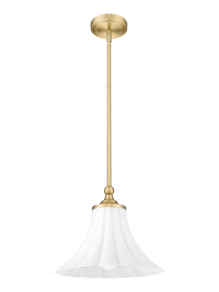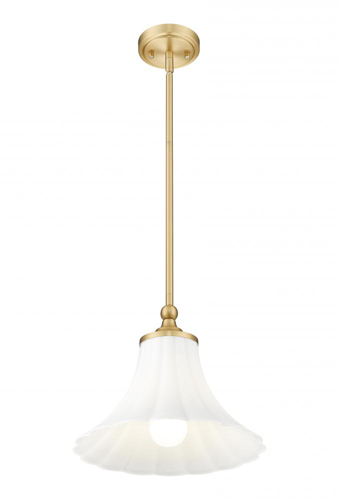 Subtle accents enhance the modern gold metal frame of an elegant one-light pendant youll want to consider. A fluted matte opal glass shade finishes a compelling silhouette, making this dimmable light fixture an exceptional choice to add accent lighting or collect in rows for a collage of luxe lighting.