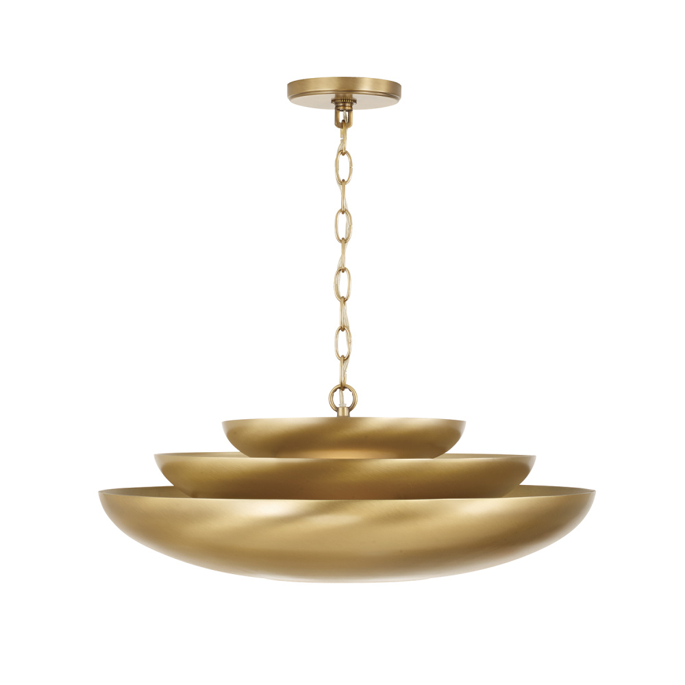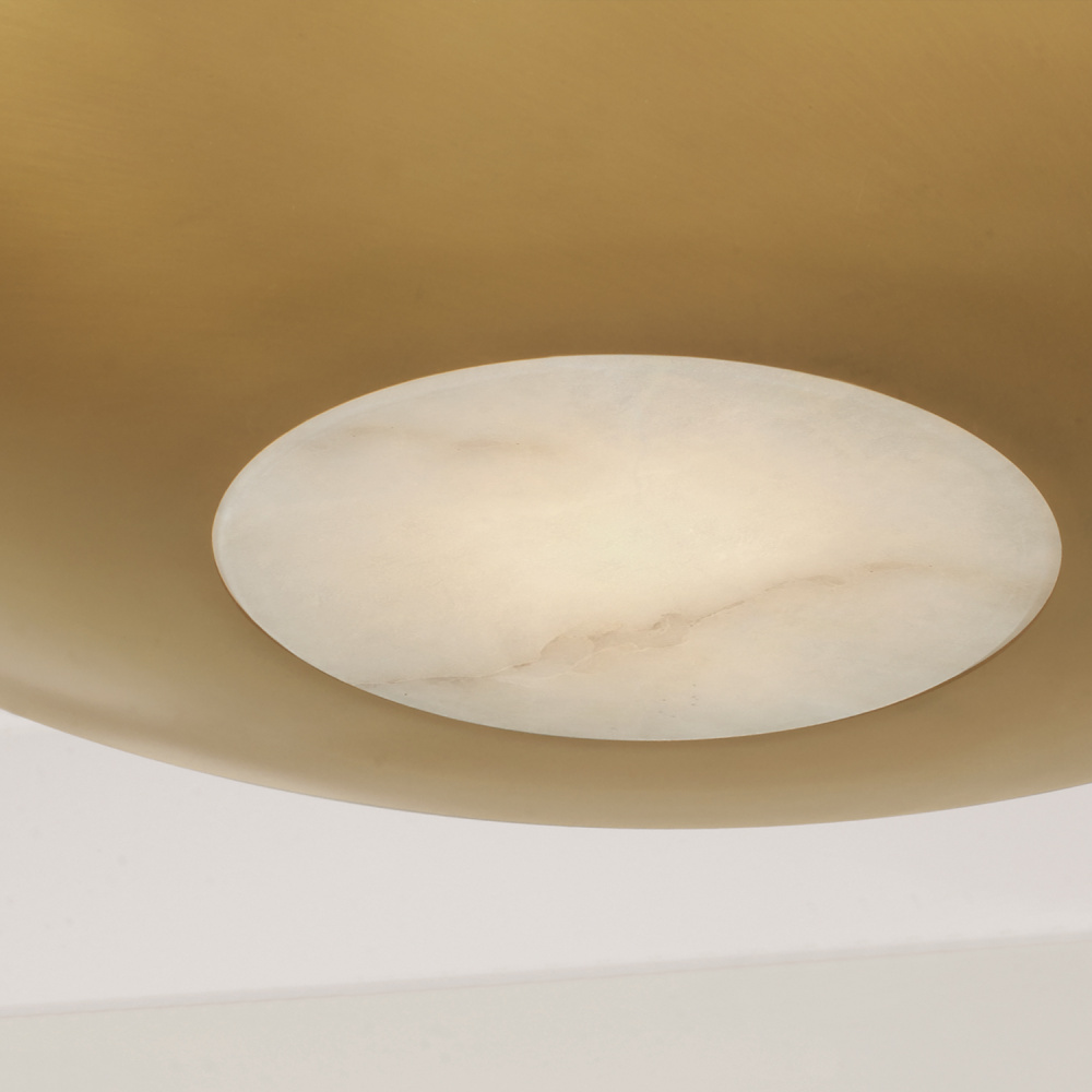 DETAILS: Combining modern design with the warm Aged Brass finish, the tiered dome silhouette is complete with a real Alabaster diffuser for a naturally beautiful illumination.