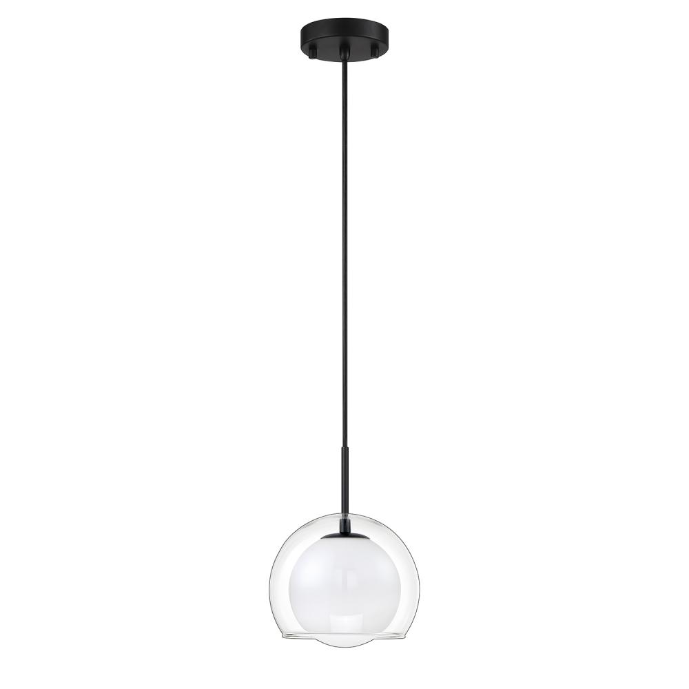 SERENO 1-Light Pendant in a Black finish with Clear and White glass