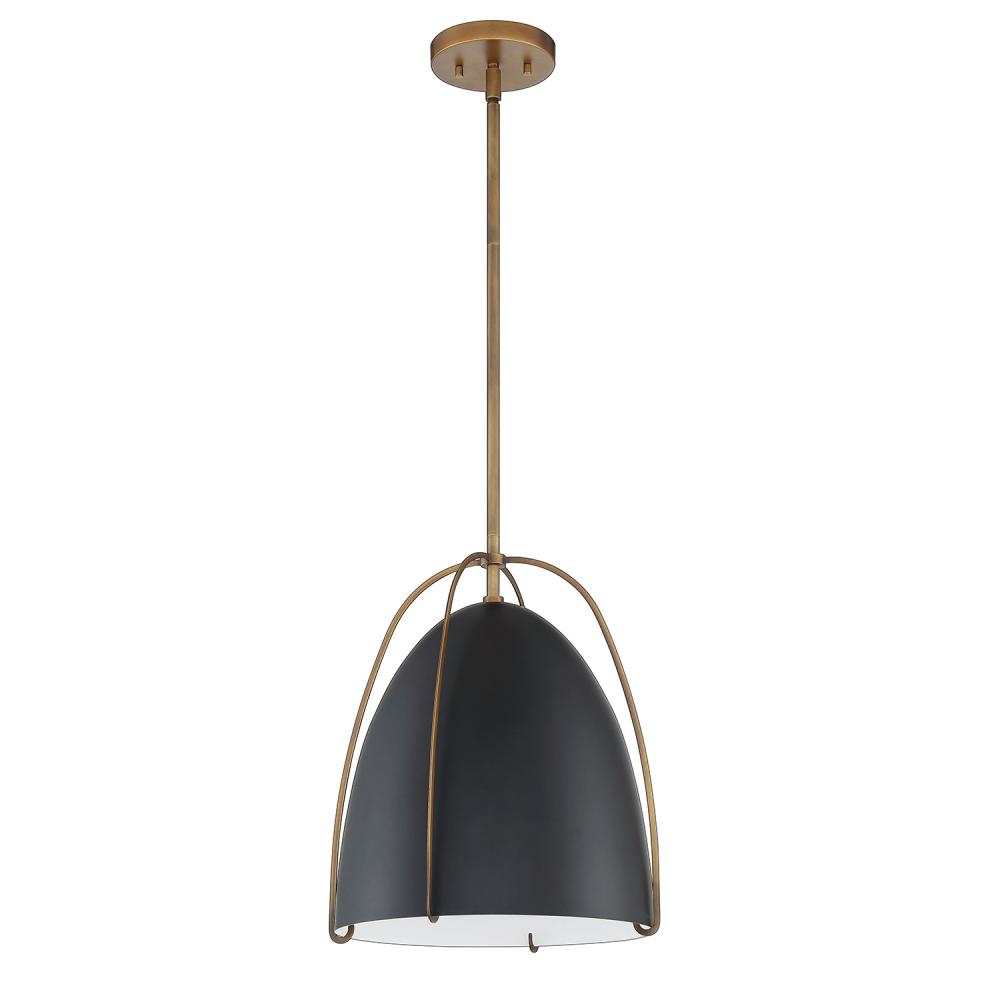 VILIA Med. Base Pendant in a Black & Brass finish with 12” metal shade