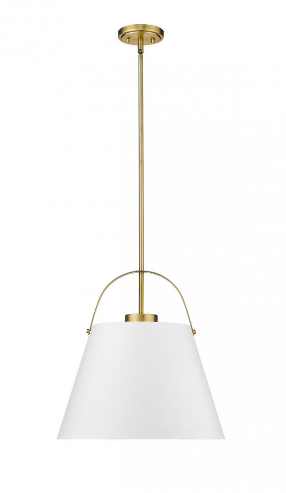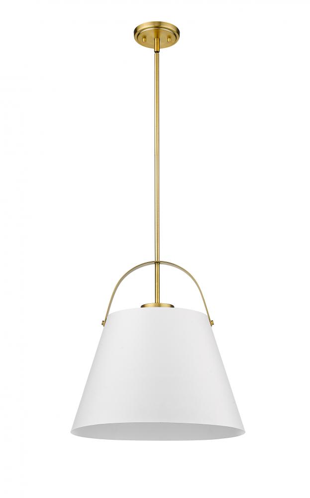 Classic industrial style adds a casual influence to this transitional single-light pendant, a superb choice for a kitchen or entertaining space. With a tapered matte white finish metal shade and heritage brass finish steel frame, it offers up an airy, relaxing aesthetic with plenty of personality.