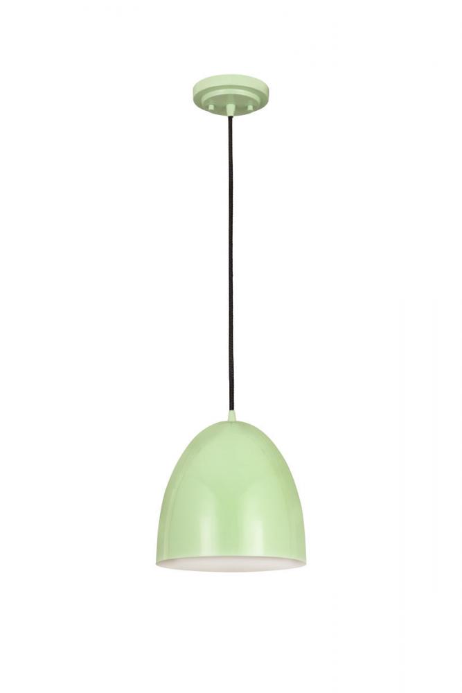 Solve lighting challenges in compact spaces with a cheeky, Mid-Century Modern style fixture that becomes part of a design scheme. The Z Studio Dome pendant brings targeted lighting to casual nooks and reading spaces, bedrooms and kitchens. With a farmhouse feel, this versatile dome-style pendant offers a soft mint finish iron shade and matching canopy, as a charming braided black cord adds finishing touches.