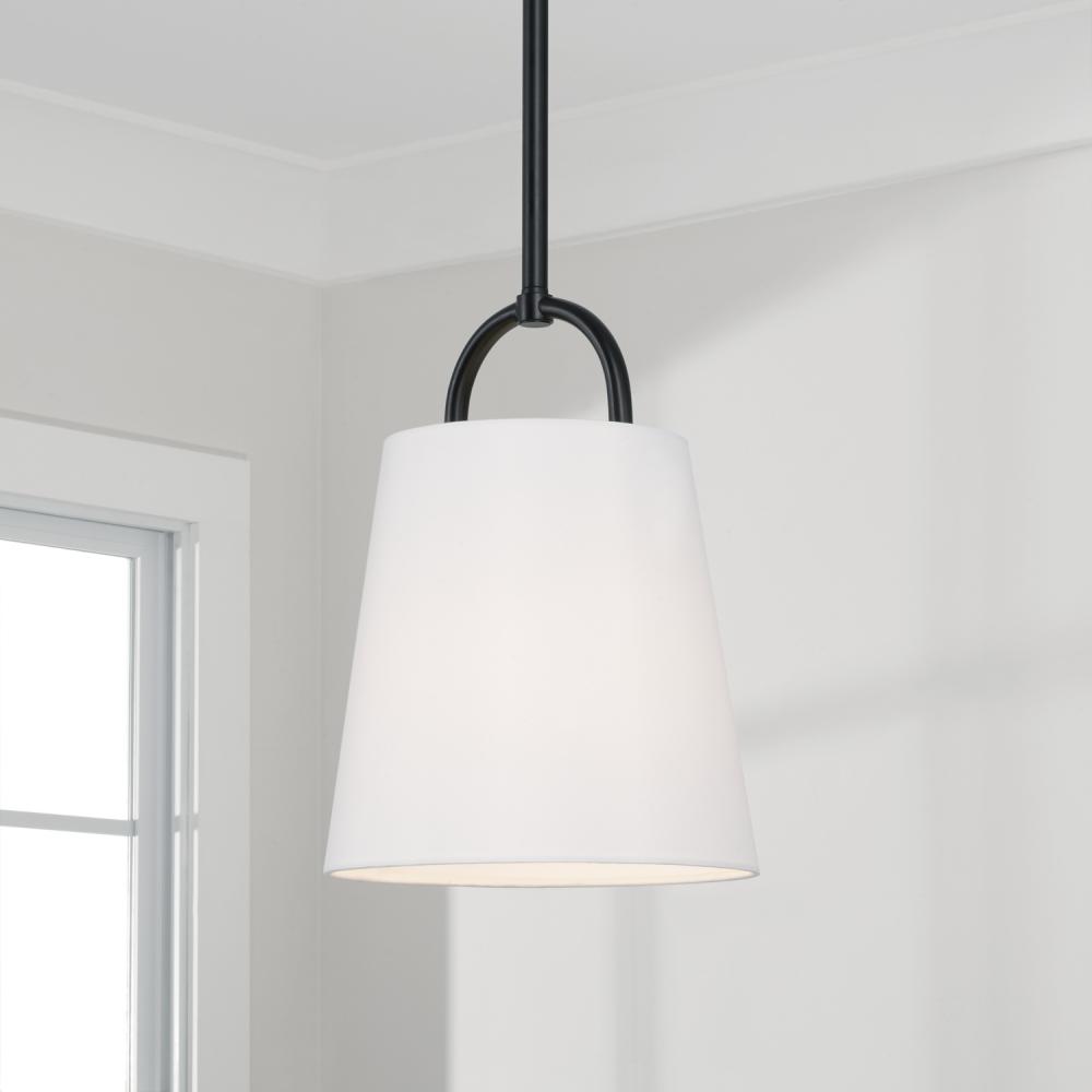 DETAILS: Crisp fabric shade accents the arch detail for a sophisticated, simplified style.