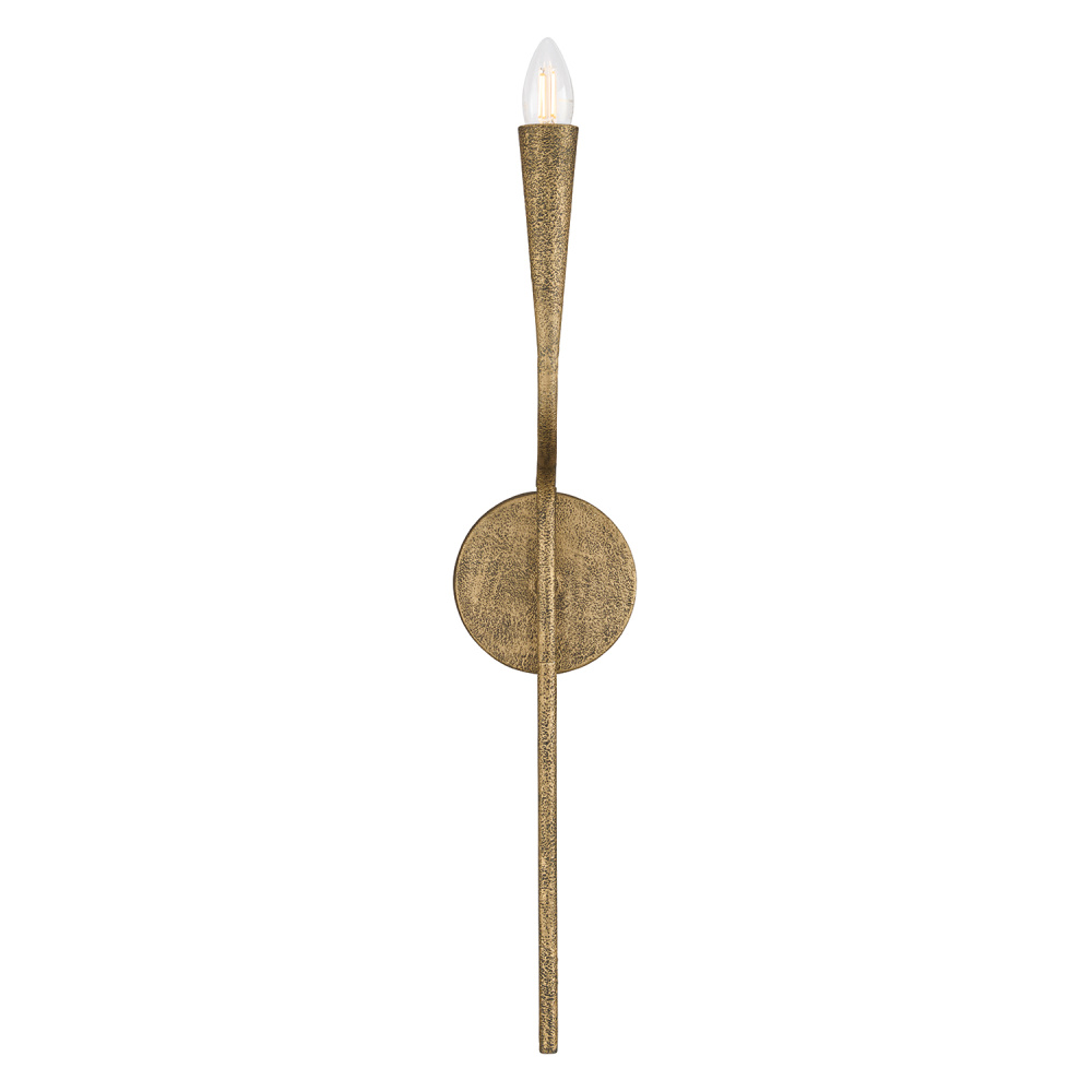 DETAILS: Layers of hand-painted texture bring stunning dimension to the Artisan Gold finish, while the slightly sunken socket and elongated finial create elevated style in the curved, seamless form.