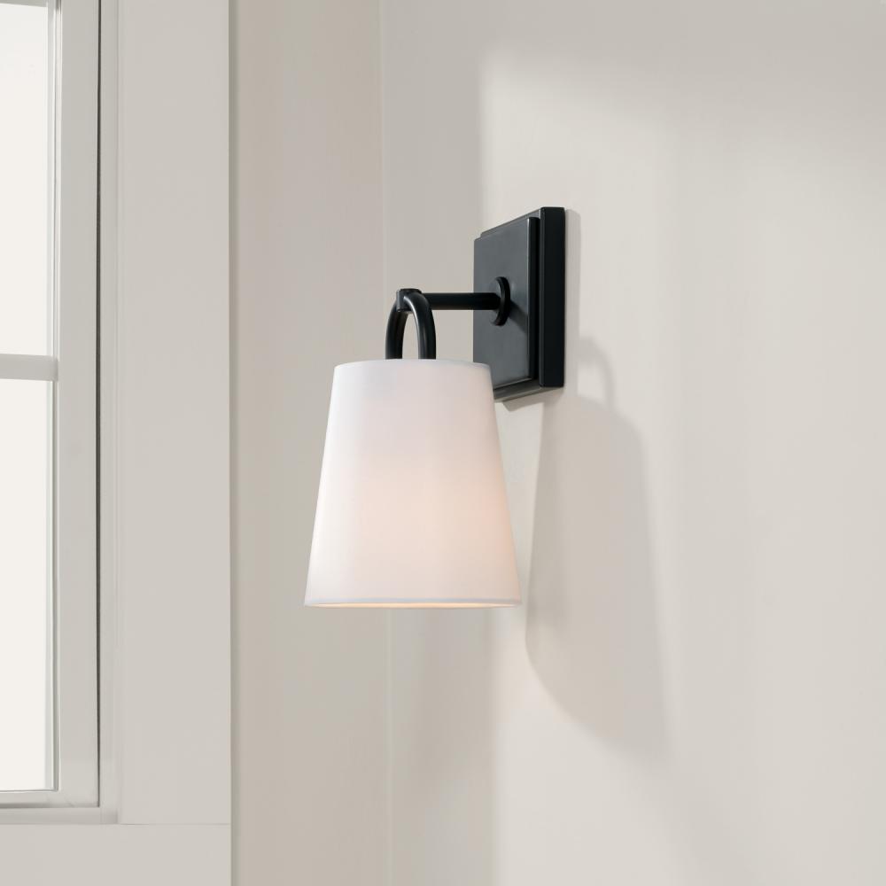 DETAILS: Crisp fabric shade accents the arch detail for a sophisticated, simplified style.