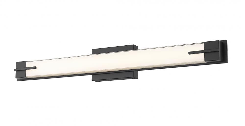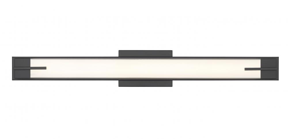 Streamline your bathroom lighting with this contemporary LED vanity fixture with a low, refined profile. In matte black that adds robust style, its a long, rectangular design with bracket details that add the perfect touch of depth on top of a silk white diffuser. Its an energy efficient choice that delivers lovely, even illumination for all your daily needs.