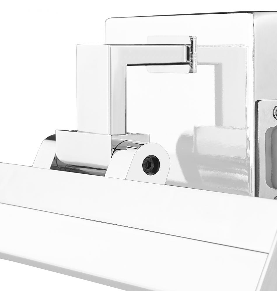 A geometric linear design adds a mix of modern and transitional industrial attitude in this one-light vanity light. Sculptural elements maintain symmetry and clean lines in a fixture with a bright chrome finish aluminum frame and a frosted plastic diffuser, emitting dimmable lighting with options for perfecting the level of ideal white color.