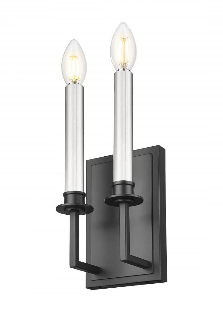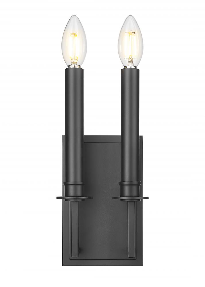 The Orson wall sconce offers a craftsman-meets-industrial vibe with its squared arm and stepped backplate in the Matte Black finish and a choice of three (included) candle covers in Matte Black, Brushed Nickel, and Rubbed Brass to complement other finishes