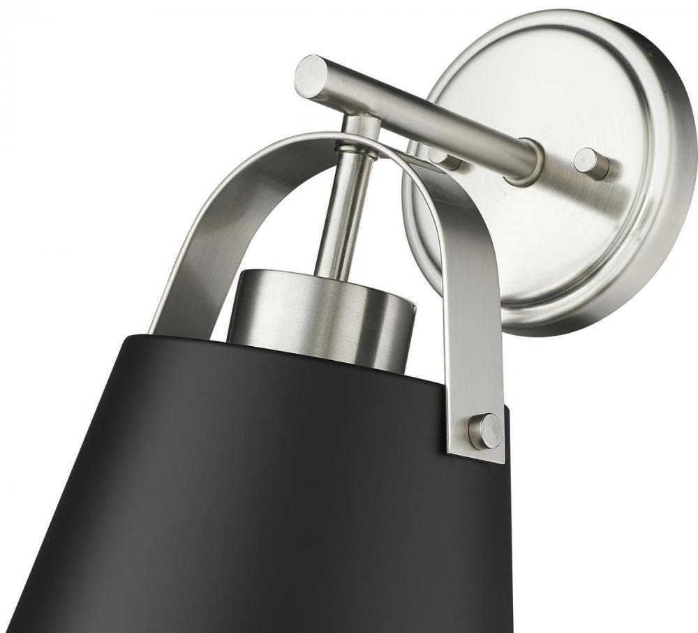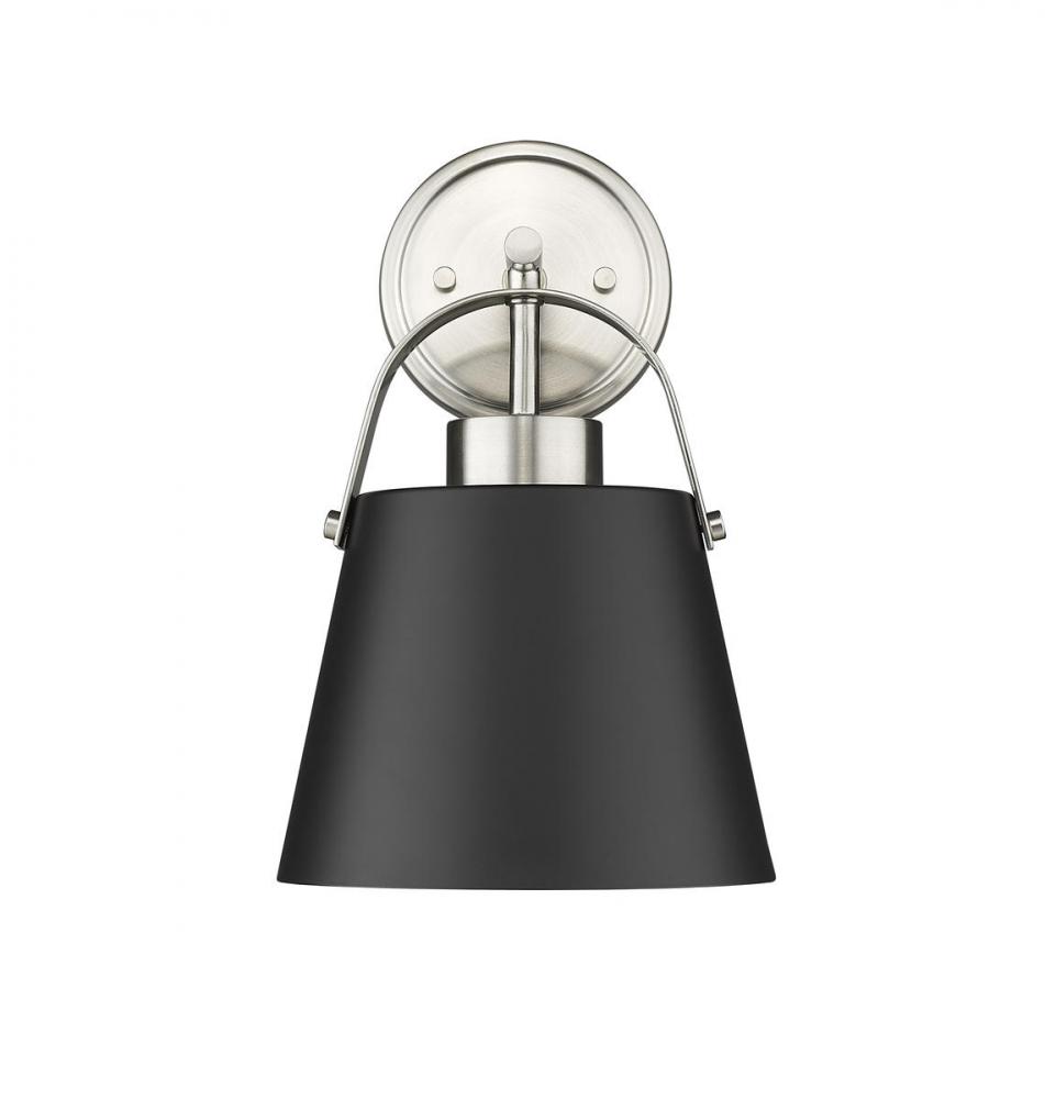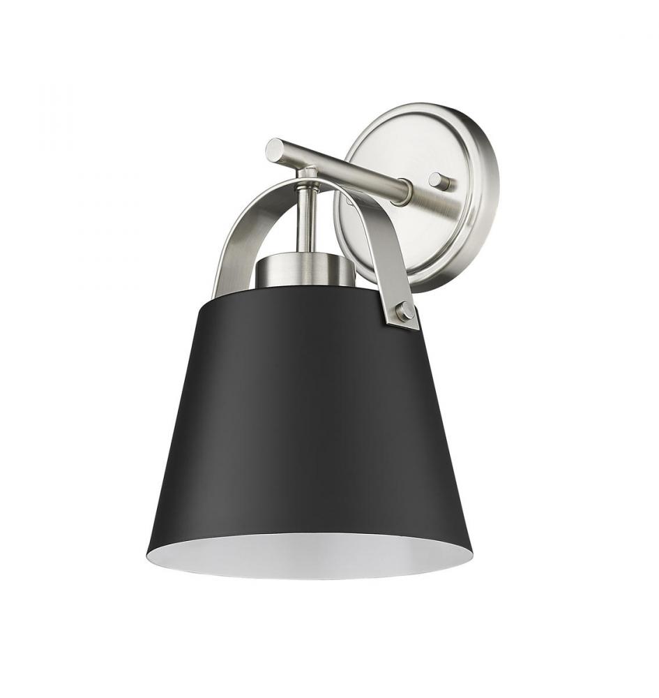 Choose sophistication to bring uplifting elegance in a casual space, adding this single-light wall sconce from the Z-Studio collection. Its tasteful farmhouse industrial design features a conical matte black finish steel shade with brushed nickel steel accents. Fresh styling contributes to a striking look as it delivers ambient lighting to hallways, bath spaces, and main living areas.