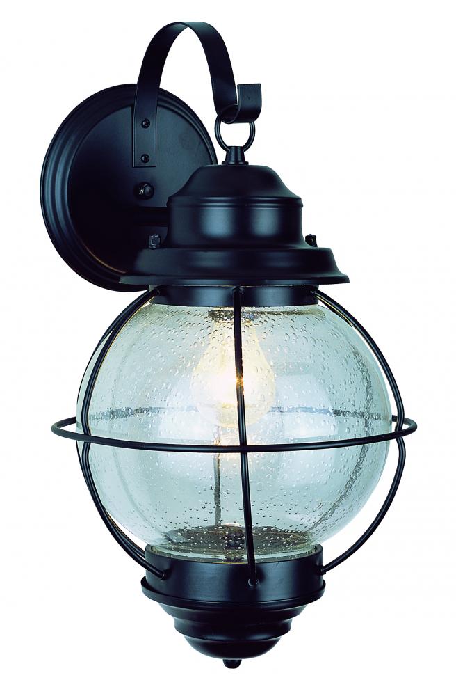 The Catalina Collection combines nautical design themes with functionality. The Catalina 13.5" Wall Lantern offers both accent lighting and supplemental area lighting as it stands out and showcases the outdoor decor. A round clear Seeded glass shade embodies classic styling of nautical lighting. The ring-hook, round wall plate, and metal piping are all details accenting this quality outdoor wall lantern.