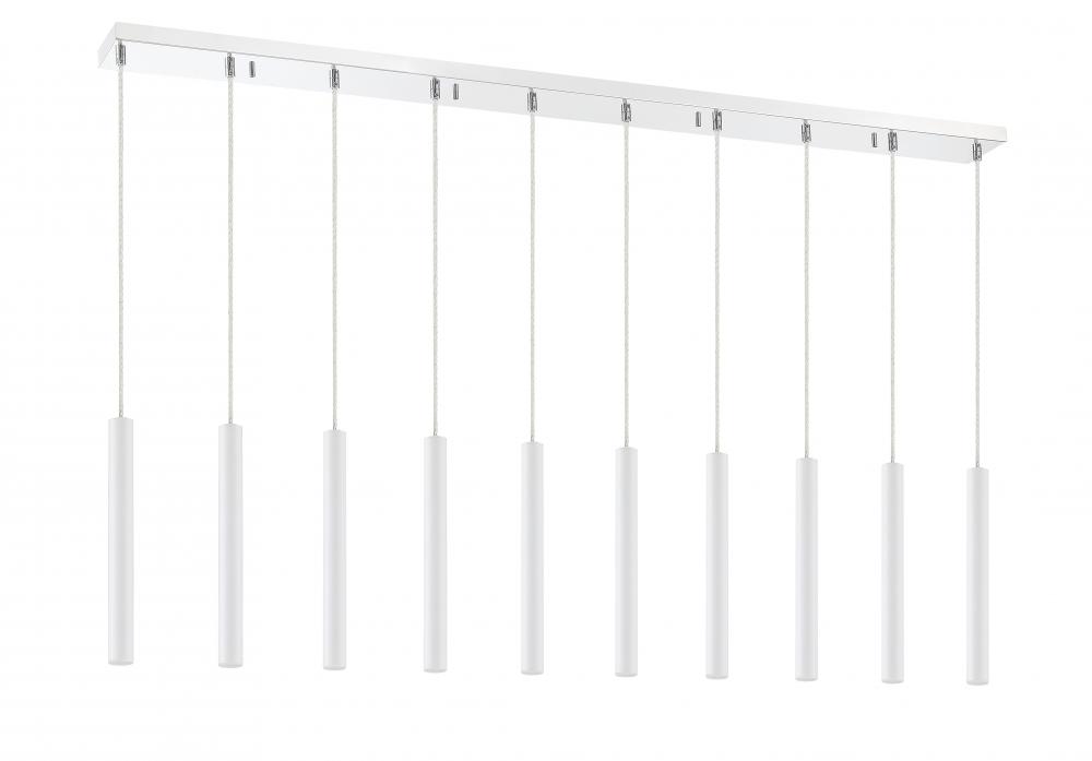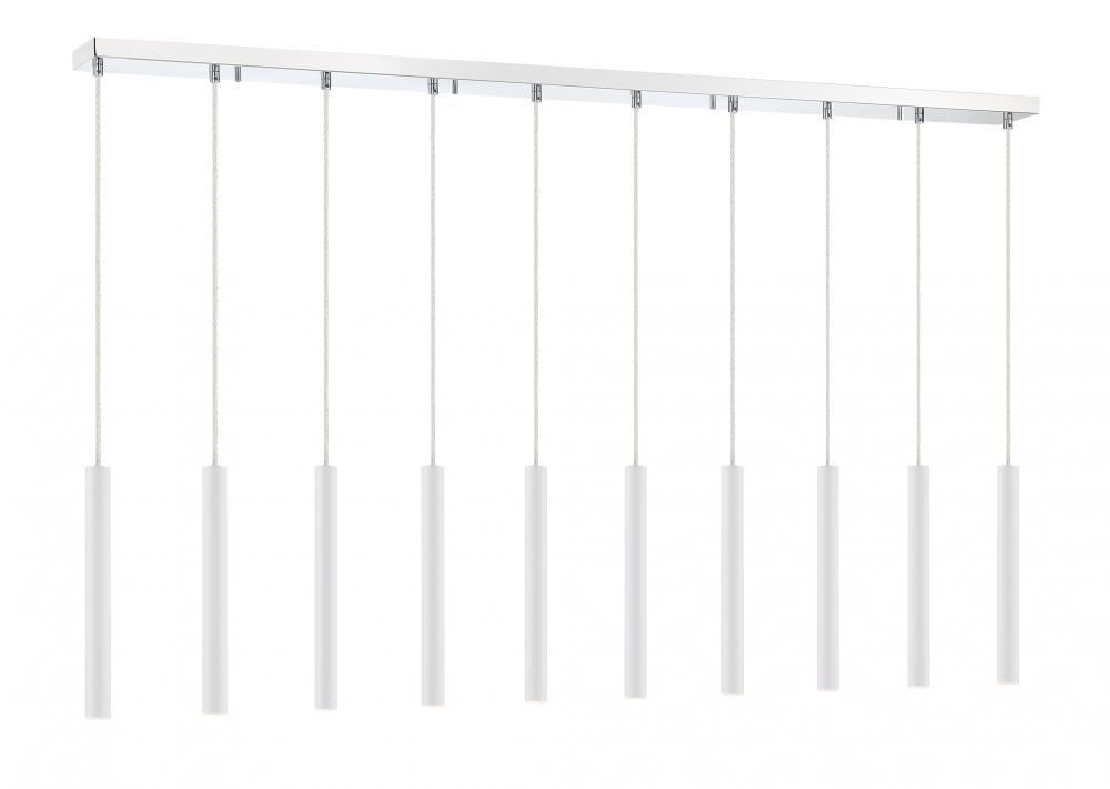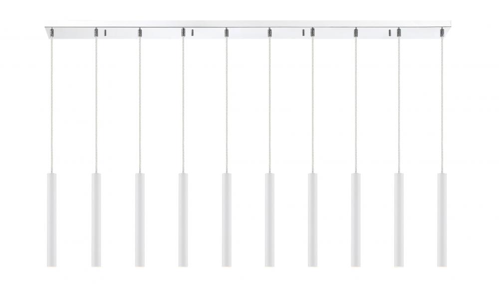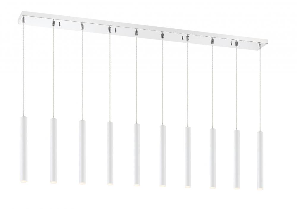 Featuring a row of clean lines, this ten-light island pendant is full of style. Matte white creates a crisp look, elevated by and elongated silhouette.