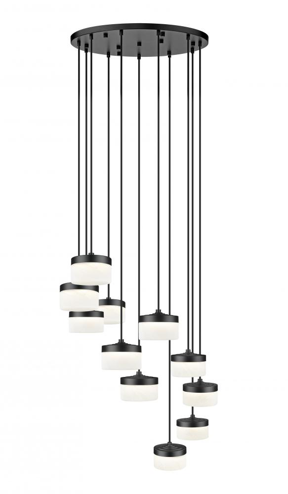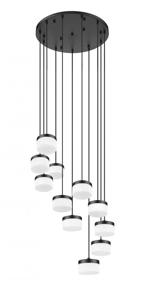 From a round canopy high above, this matte black multi-light LED chandelier releases slim cables at varied lengths that let the clouded shades gather in a gentle cascade. Because each element carries integrated LEDs, the composition creates a column of brightness that works beautifully in tall foyers, stairwells, or living rooms where you want both presence and practical illumination. The interplay of dark metal, clean lines, and glowing glass establishes a modern focal point that anchors the architecture and makes every arrival feel a little more memorable.