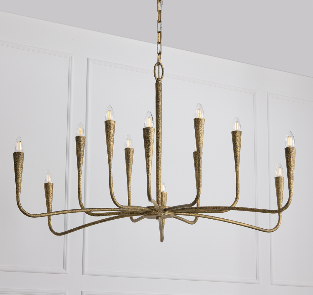 DETAILS: Layers of hand-painted texture bring stunning dimension to the Artisan Gold finish, while the slightly sunken sockets and designer chain create elevated style in the curved, seamless form.