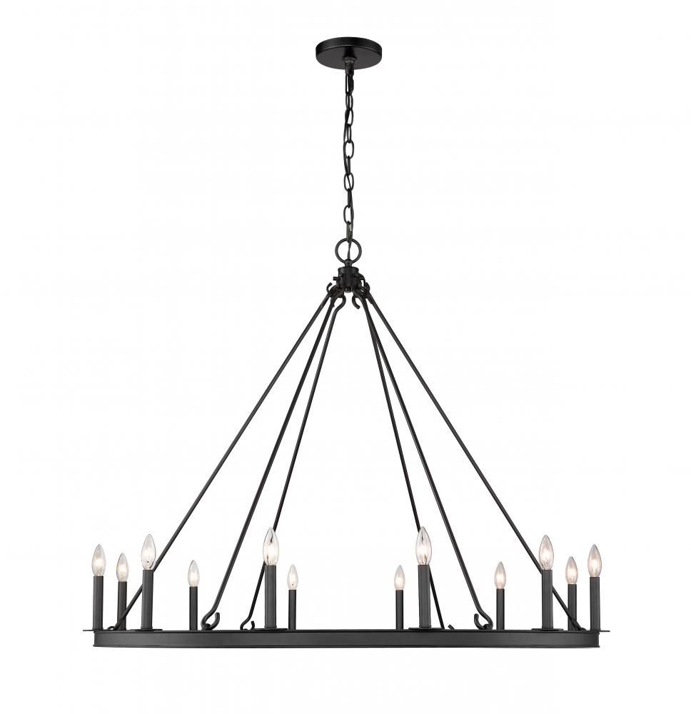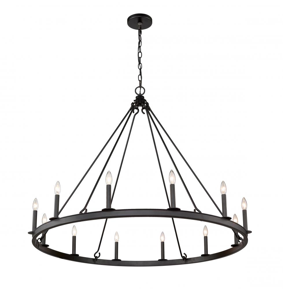 Give your home lighting the majesty of this twelve-light chandelier. Its crafted in a handsome matte black finish and features the candle-inspired lights in a classic round design. Its perfectly suited for the dining room, foyer, kitchen, or entertainment room.