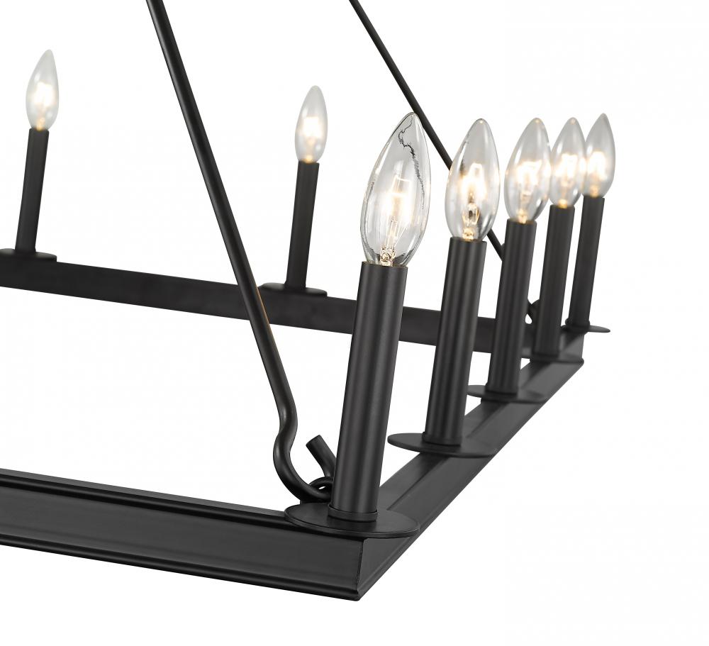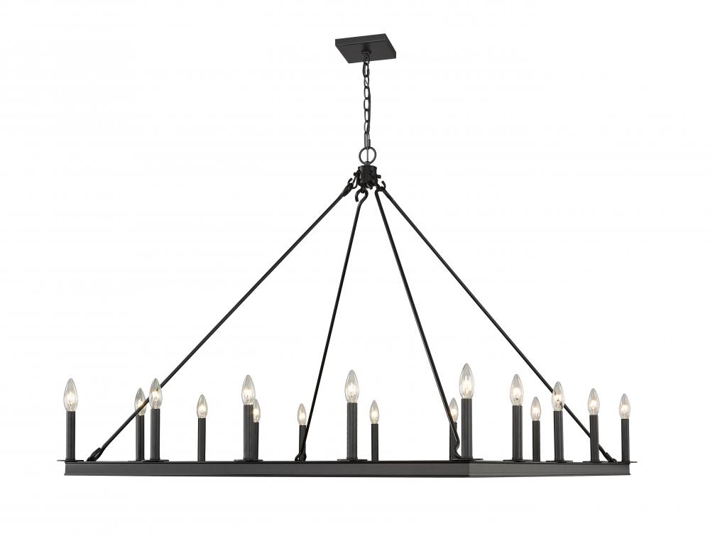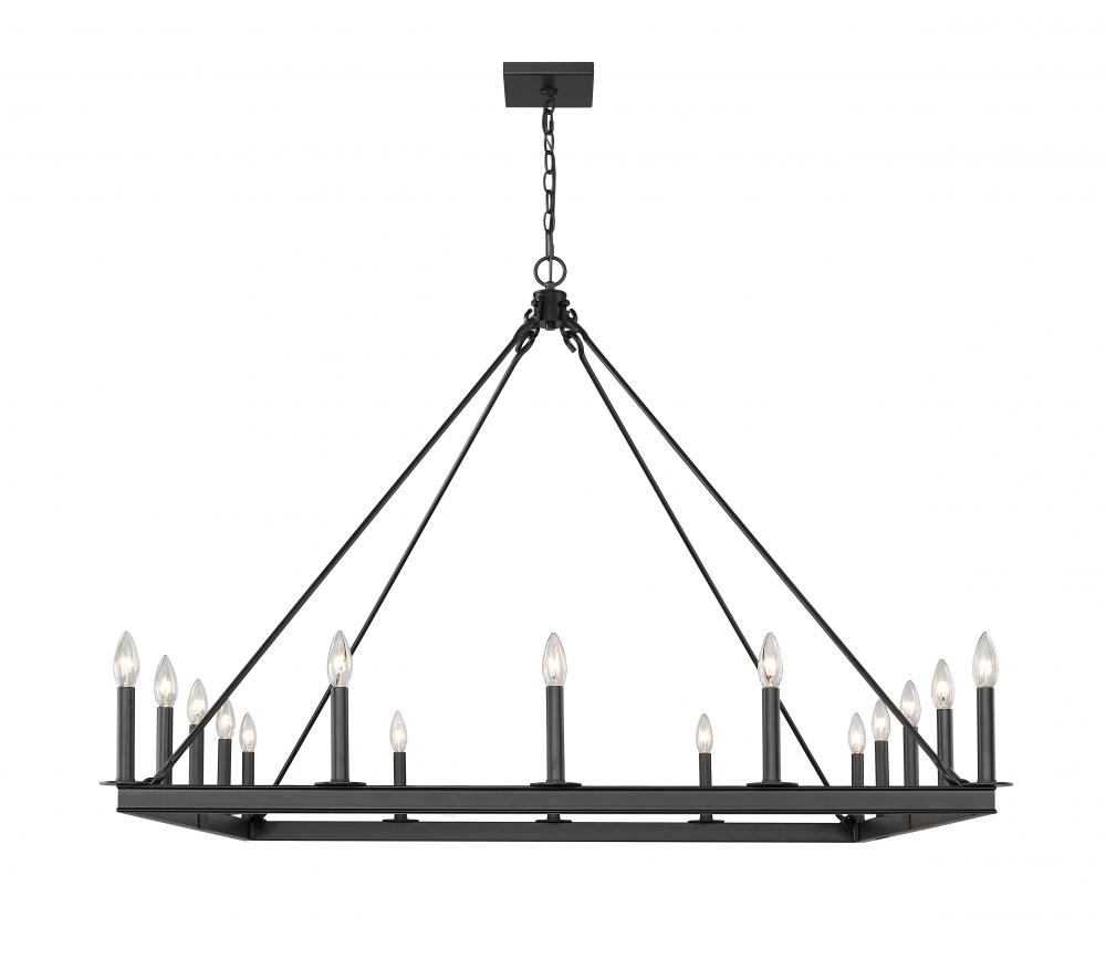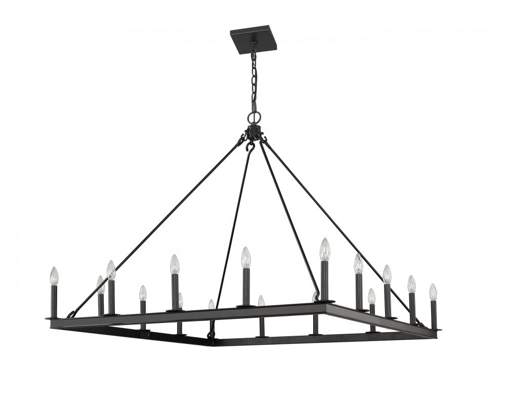 Take elegant home lighting to another level with this jaw-dropping sixteen-light chandelier. It features a handsome matte black finish with the candle-inspired lights in a bold square design. Its the chandelier youve been looking for to transform your dining room, foyer, or kitchen.