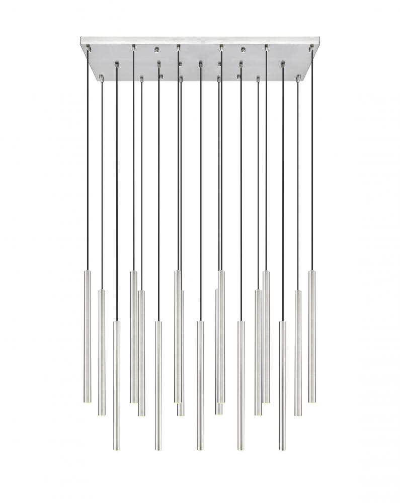 Capture a sophisticated ambiance with this modern 17-light chandelier. Its linear design is ideal for kitchen islands, dining tables and other elongated spaces, casting bright, dimmable illumination with integrated LED lights. The fixture shows off a sleek brushed nickel finish, ensuring compatibility with a wide range of decor styles.