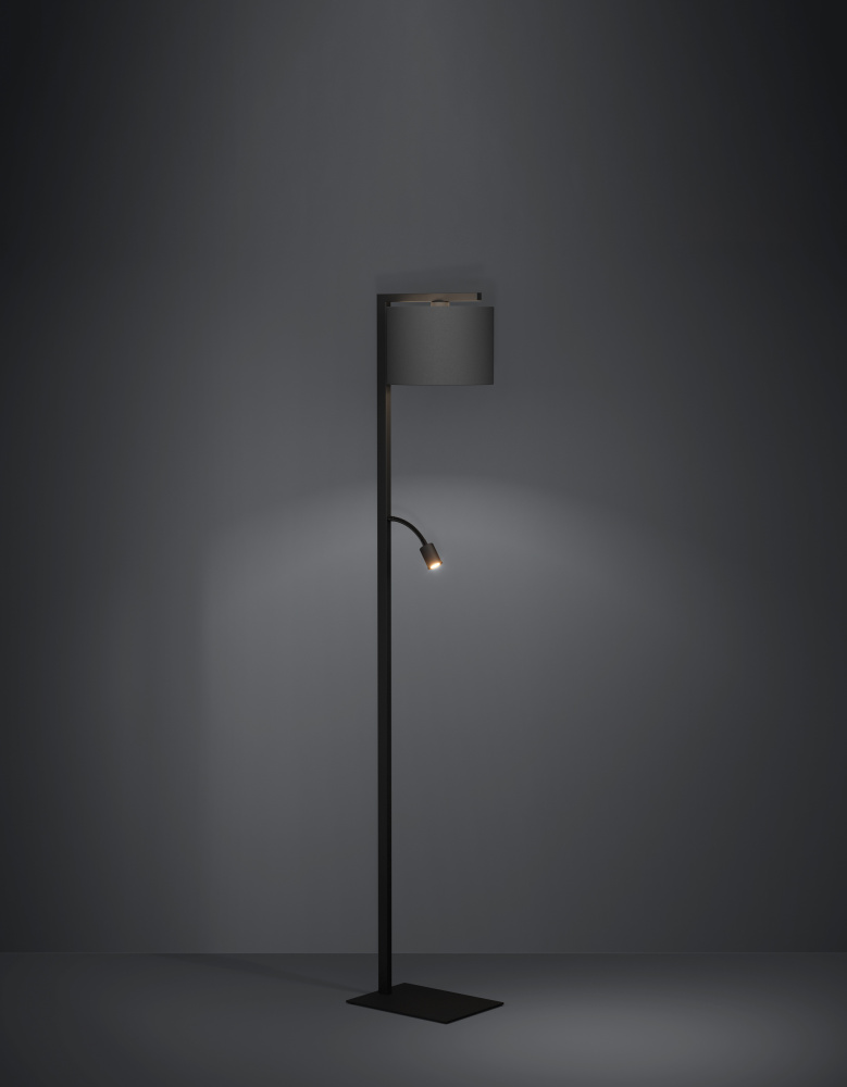The FOLIGNO LED floor lamp has a long slender black metal body and a black fabric shade. The small reading light on the body is adjustable, so it can be positioned to suit your needs. The integrated LEDs in the reading light produce a warm white light. With a classic design, the light can be integrated into any interior style.