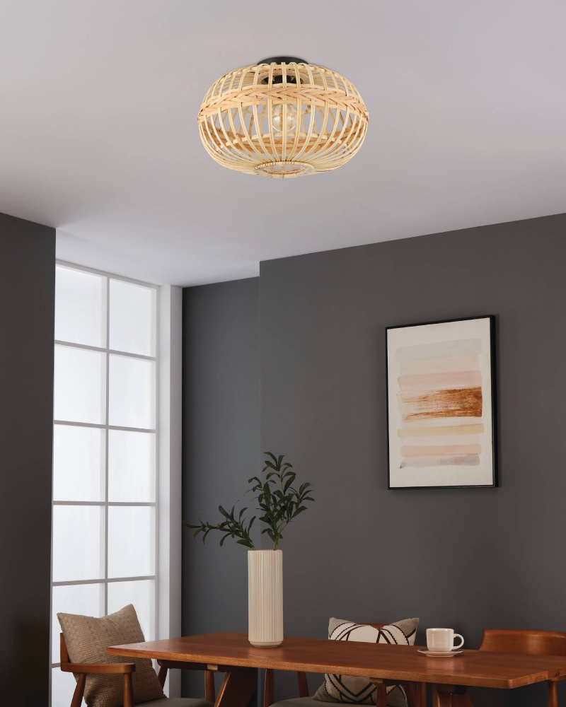 The Amsfield ceiling light will add warmth to your living areas. This ceiling light features a round shaped light wood shade surrounding a single bulb. The design of this shade means the light offers a stunning effect when lit and would make a striking addtion to any room.