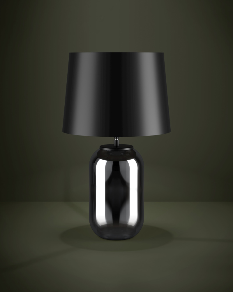 The CUITE table lamp features a black smoked oval glass base and a conical black metal shade. This classic combination of glass and metal gives the light a well-balanced yet compelling appearance. The design blends superbly with various styles of interior.