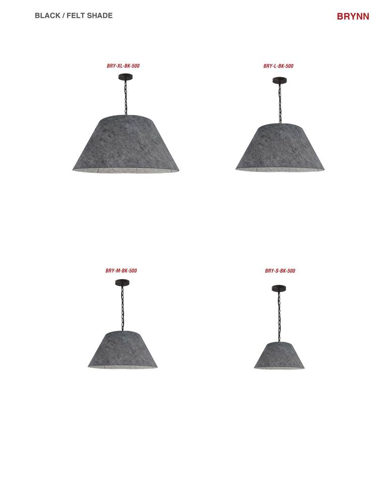 Dainolite BRY-S-BK-500 - 1LT Brynn Small Pendant, GRY Felt Shade, Black