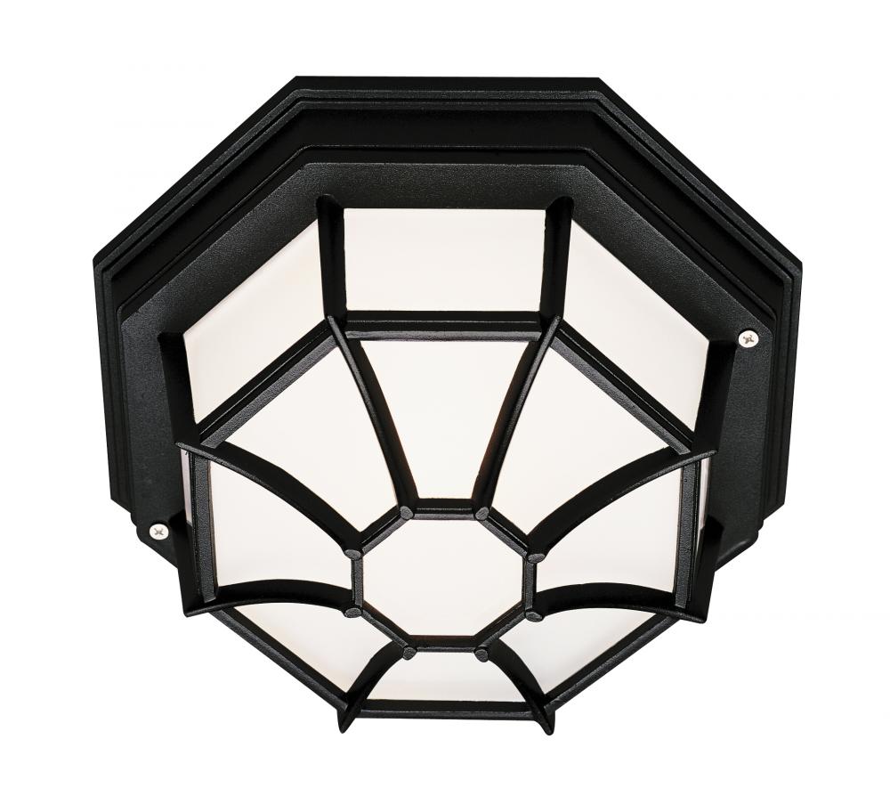 The Benkert Collection is a low-profile style designed to cast a soft ambient light over a wide area. The distinct shape blends with any decor , while also illuminating a variety of outdoor living areas. The prominent web-like metal housing is an octagonal shape. The Benkert 4" Flushmount Lantern accepts a single light, has frosted glass panels and is offered in multiple finish choices.