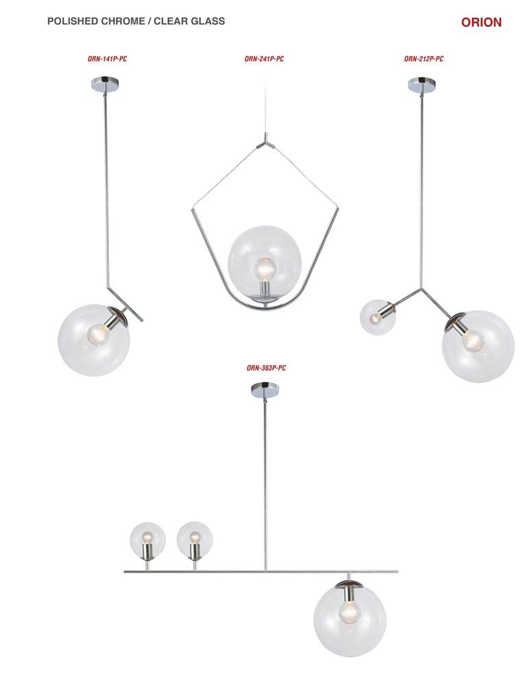 Inspired by the beauty of celestial shapes, the Orion family of lighting contrasts linear elements with glass globes for a space age sense of style. The design comes in a variety of configurations, including straight drops as well as horizontal options. The metal frame in your choice of finish features elegant straight lines in a geometric pattern. The glass globe lights are set inside the design in a variety of eye-catching configurations, according to the format. Orion lighting adds a thoroughly contemporary element of style to your living or dining rooms, or a chic bedroom.