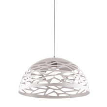 Artful in its design, and elegant in its effect, the Coral family of pendant lighting adds a graceful note to your home. The open pattern creates an eye-catching effect that adds a point of interest to modern and mid-century furnishings. The metal frame drops to an inverted half globe, with an intriguing and irregular cut-out pattern inspired by the delightfully varied patterns of the coral reef. Clean, stylized lines give it a modern edge. Coral lighting adds textural interest to the smooth lines of a kitchen or dining area.