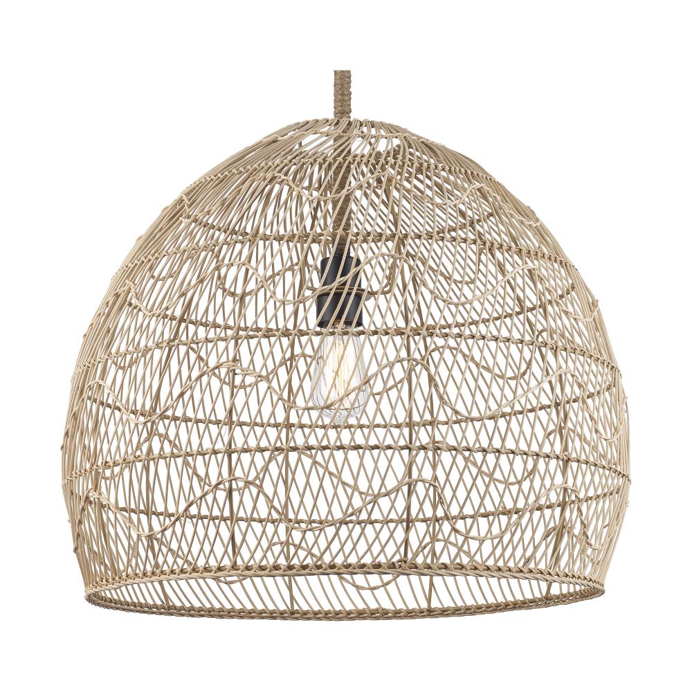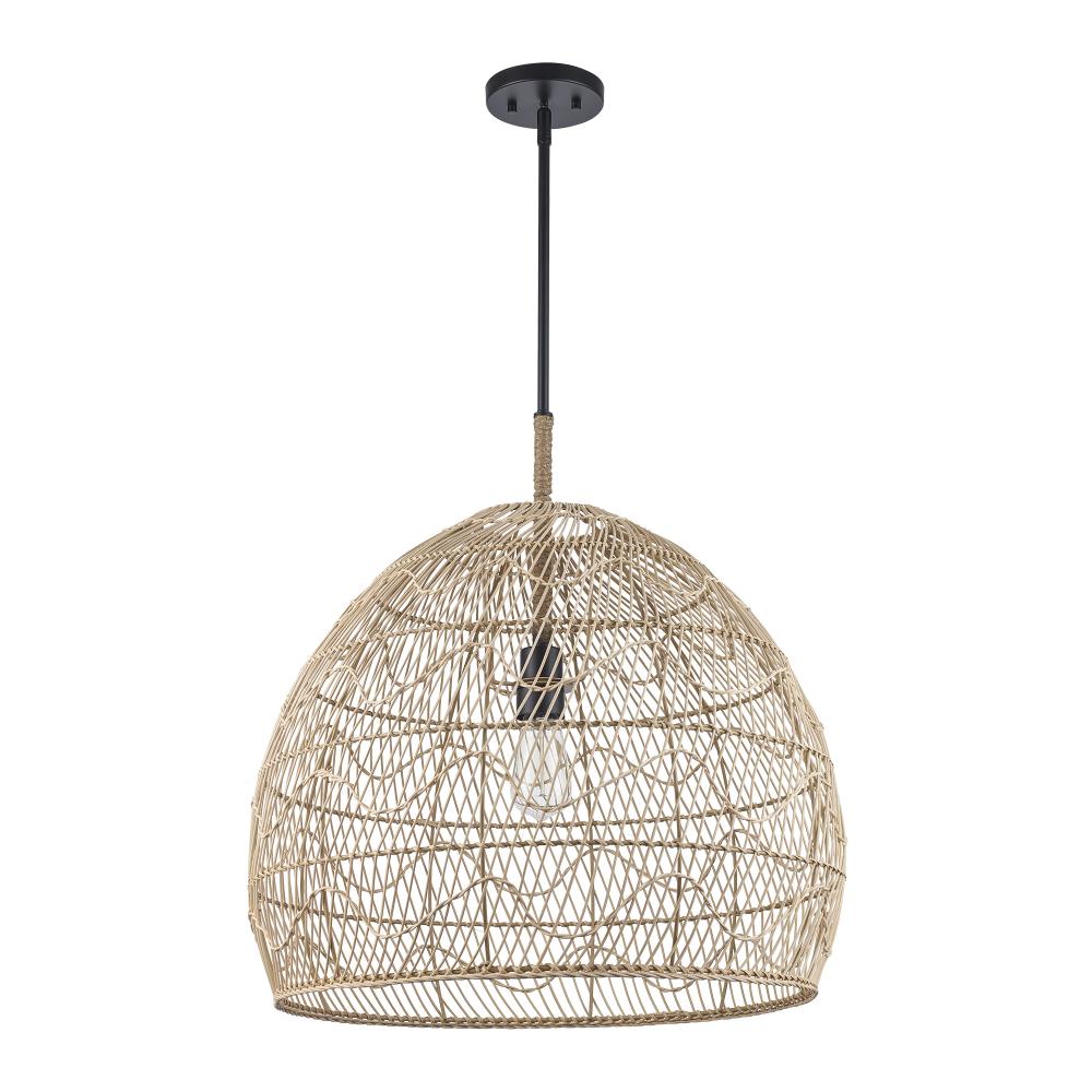 1LT PENDANT RATTAN WAVE 23"-BK