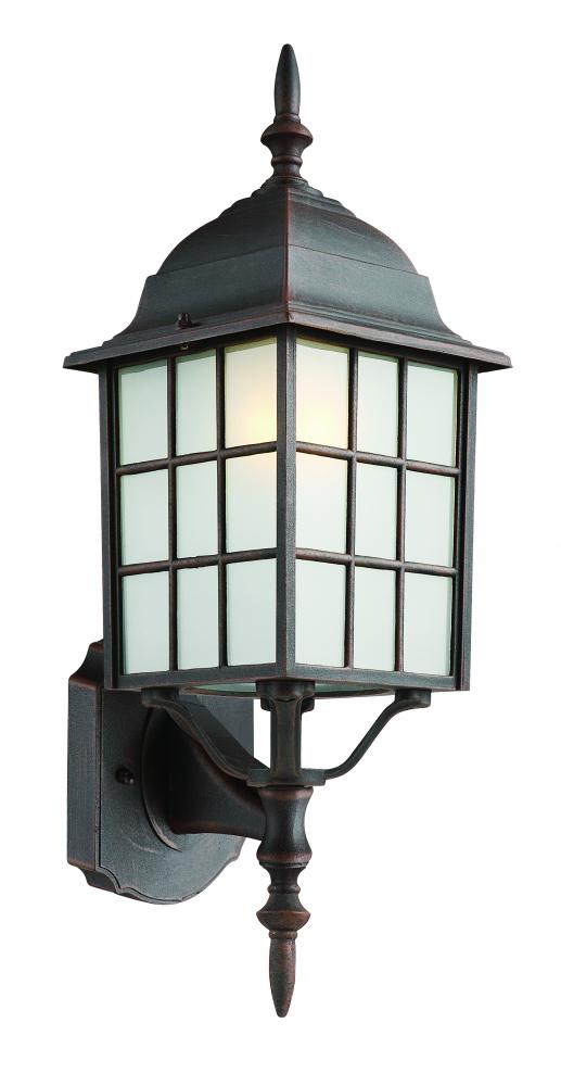 The San Gabriel 19.5" Wall Lantern combines Mission/Craftsman design themes with functionality. This fixture offers both accent lighting and supplemental area lighting as it stands out and showcases the outdoor decor. Bring the nostalgic charm of a mission inspired lantern with craftsman appeal to your entryway or garage exterior with the San Gabriel Collection. With this genre and multiple finish options to choose from, the San Gabriel 19.5" Wall Lantern is suitable to complement a variety of exteriors. There are nine windows on each side, and the single light behind the Frosted Glass shade creates a lovely diffused light in any outdoor environment.