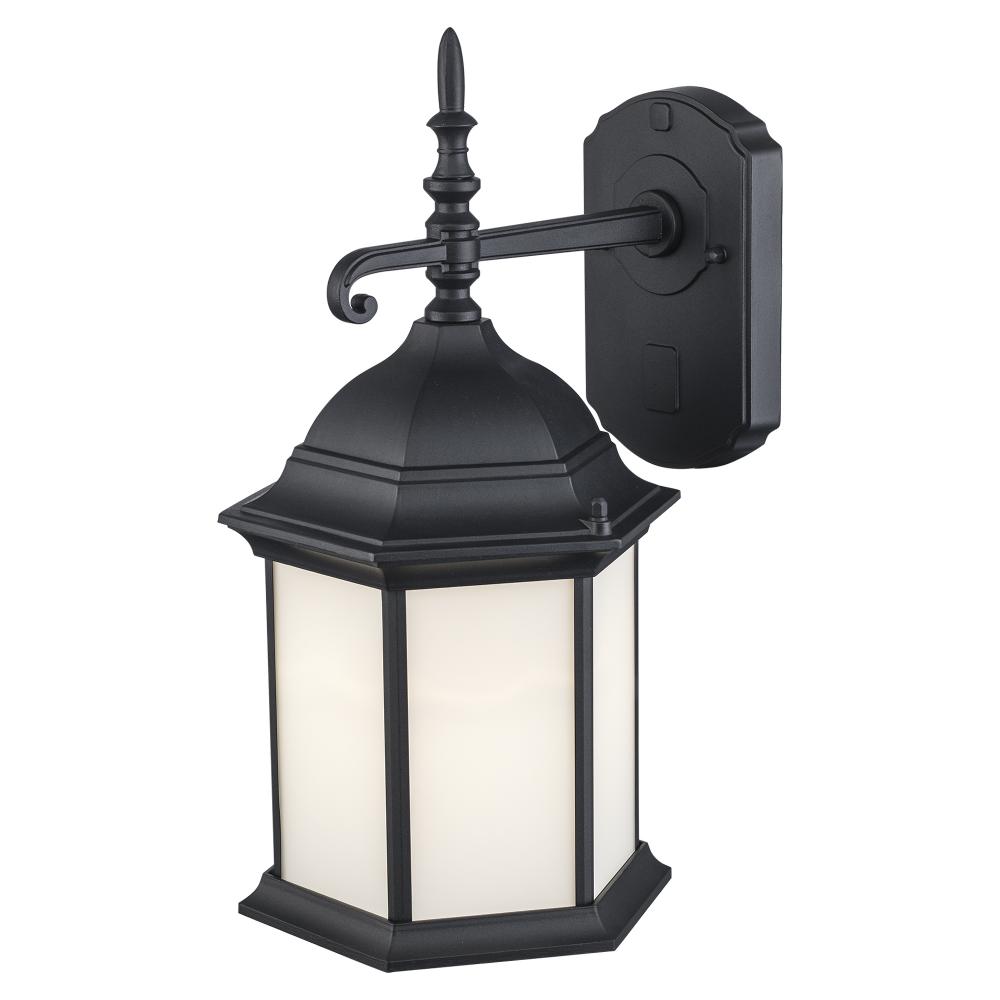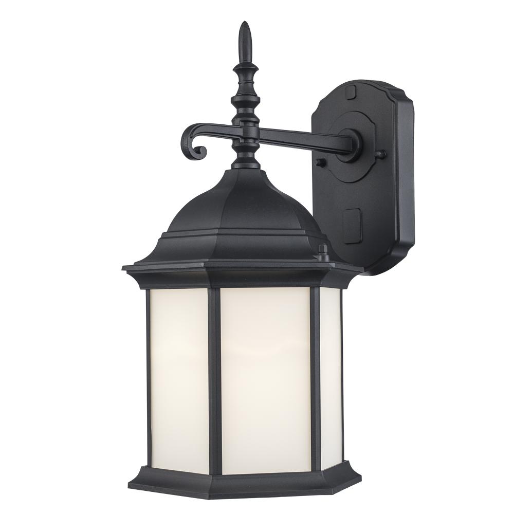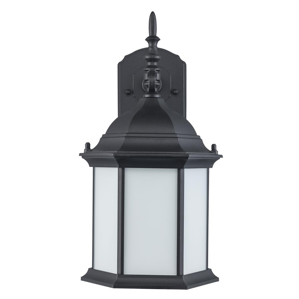 1LT-WALL LANTERN-LG-BK-WH FROS